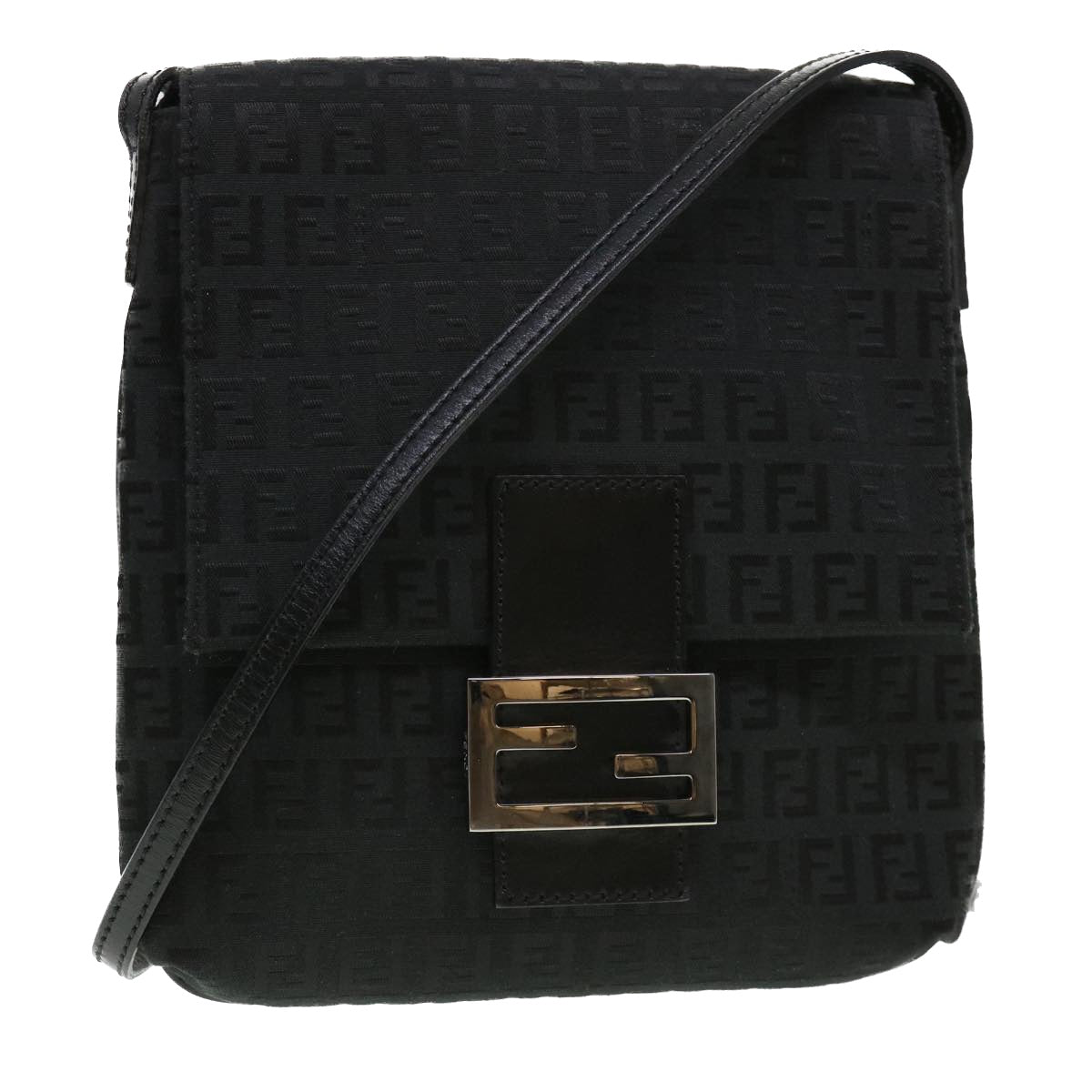 FENDI Zucchino Canvas Shoulder Bag Black 2288-8BT075-JQ5-088 rd4687