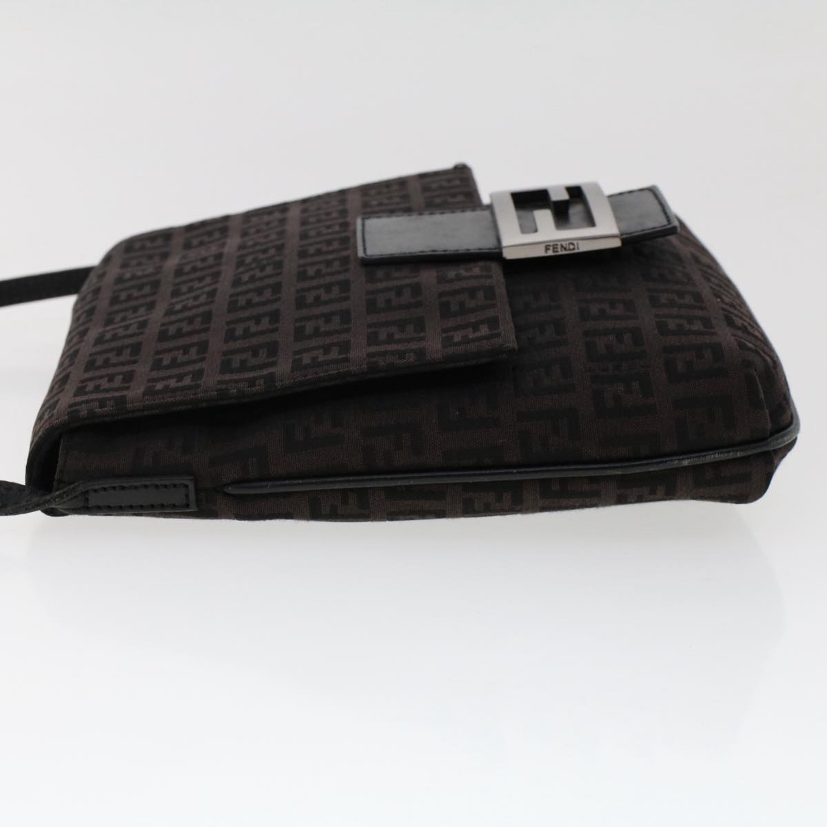 FENDI Zucchino Canvas Shoulder Bag Dark Brown Auth fm2601