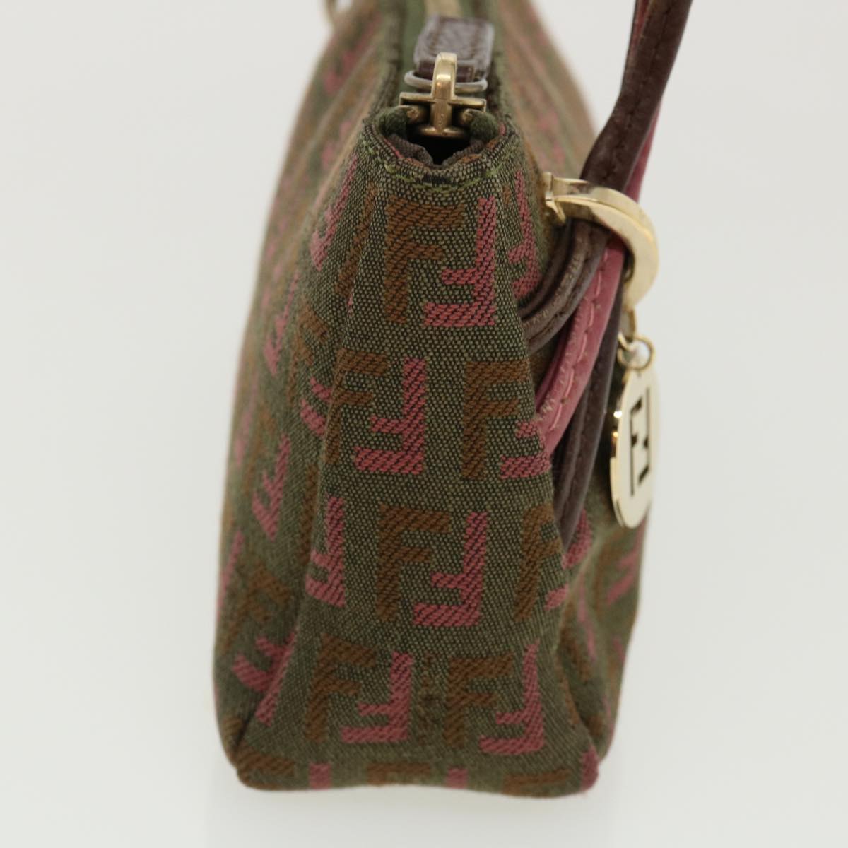 FENDI Zucchino Canvas Shoulder Bag Khaki Pink Auth am3639