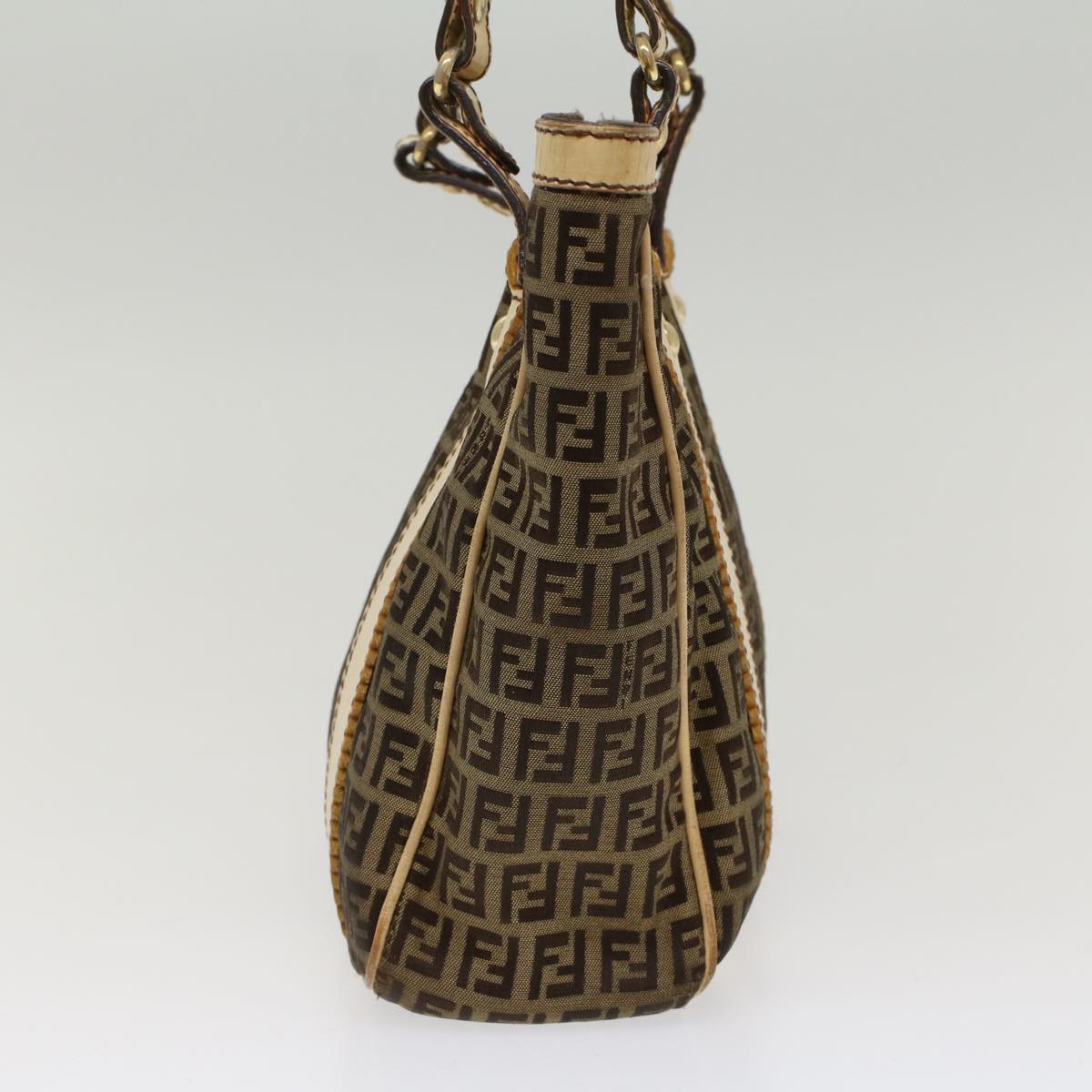 FENDI Zucchino Canvas Shoulder Bag Leather Brown Auth ac2009