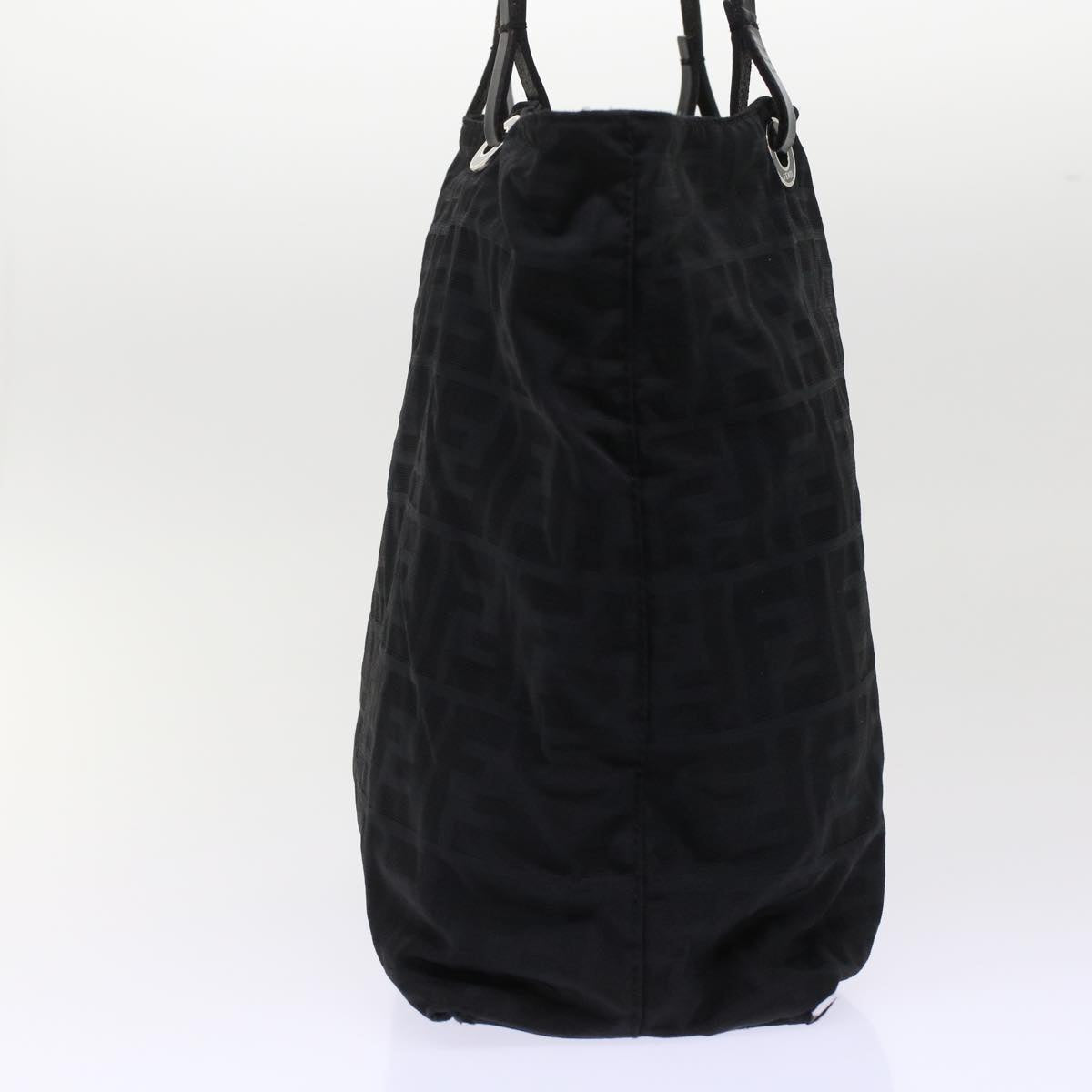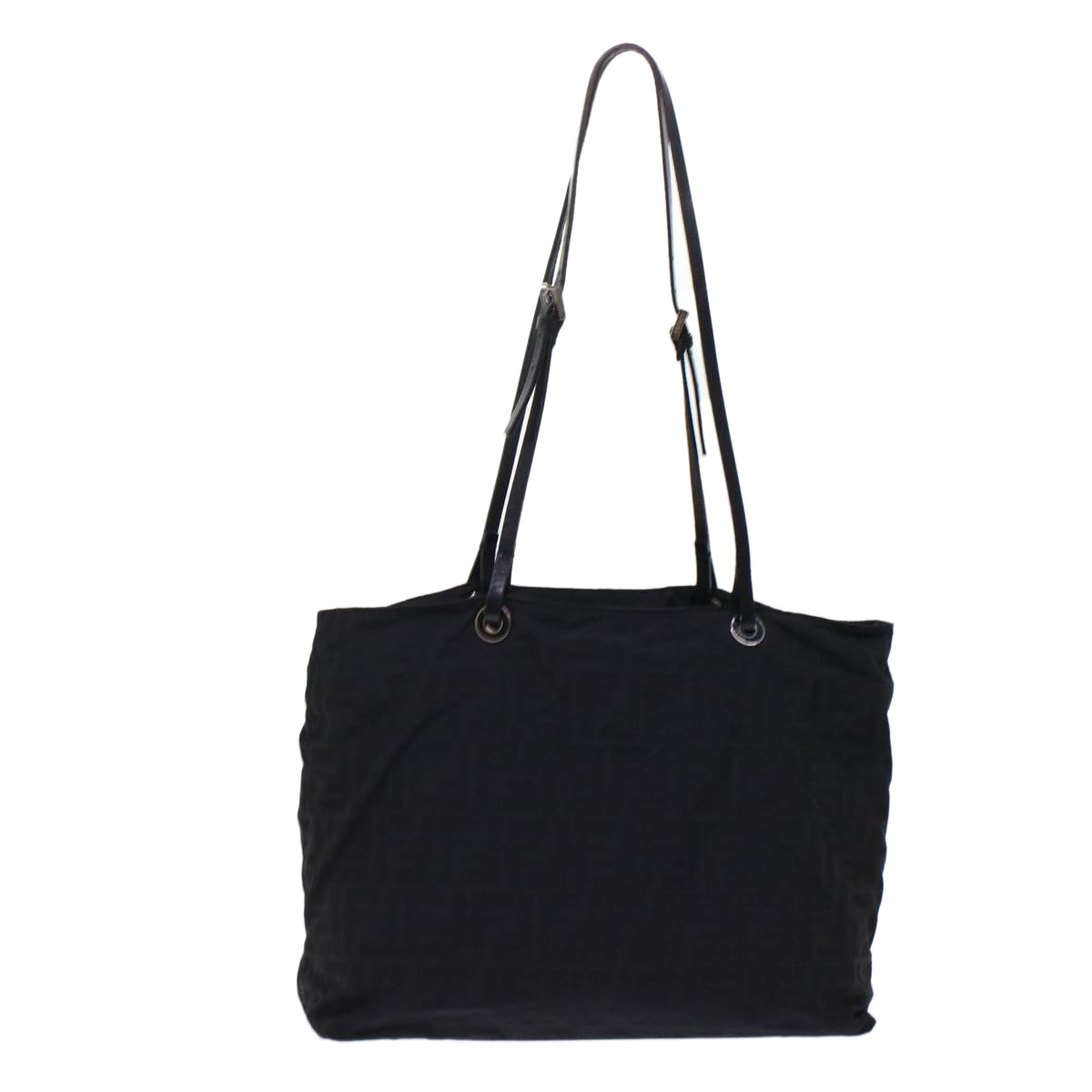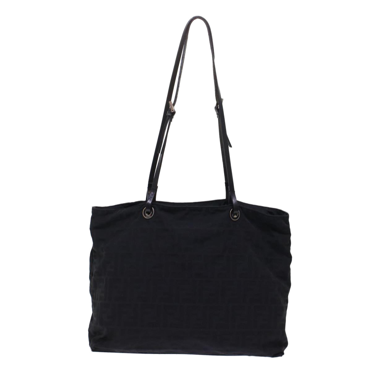 FENDI Zucchino Canvas Shoulder Bag Nylon Leather Black 49110
