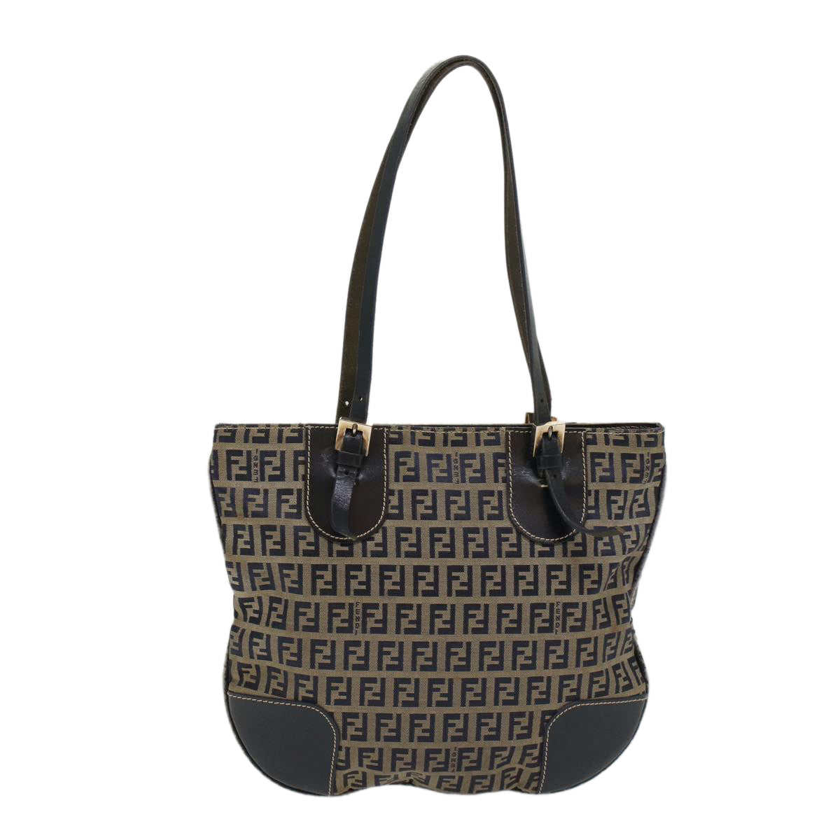 FENDI Zucchino Canvas Shoulder Bag Nylon Navy 48160