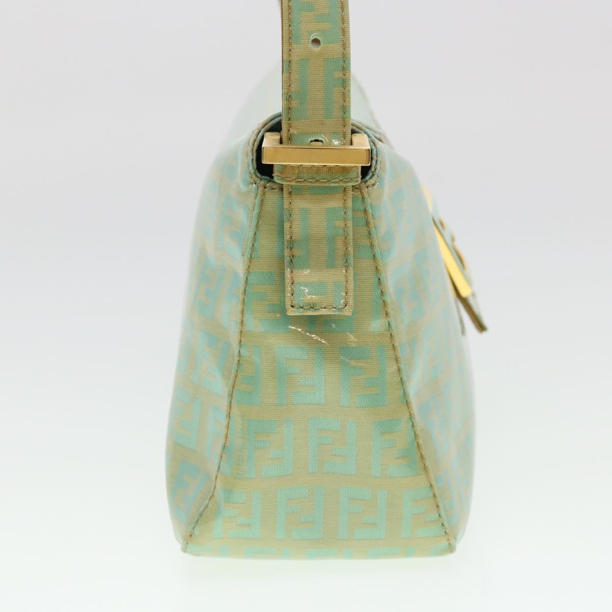 FENDI Zucchino Mamma Baguette Shoulder Bag Coated Canvas Light Blue Auth yk6594B