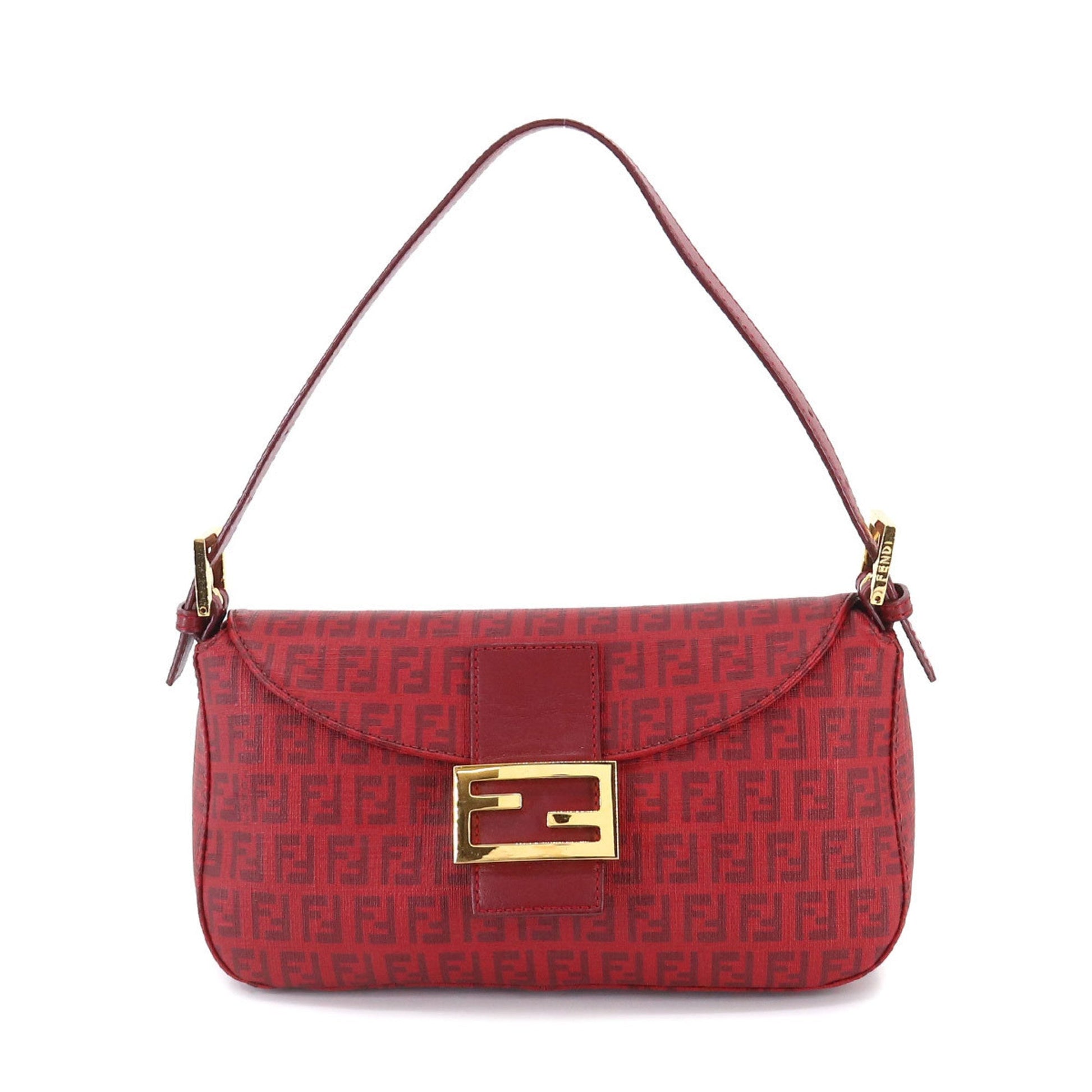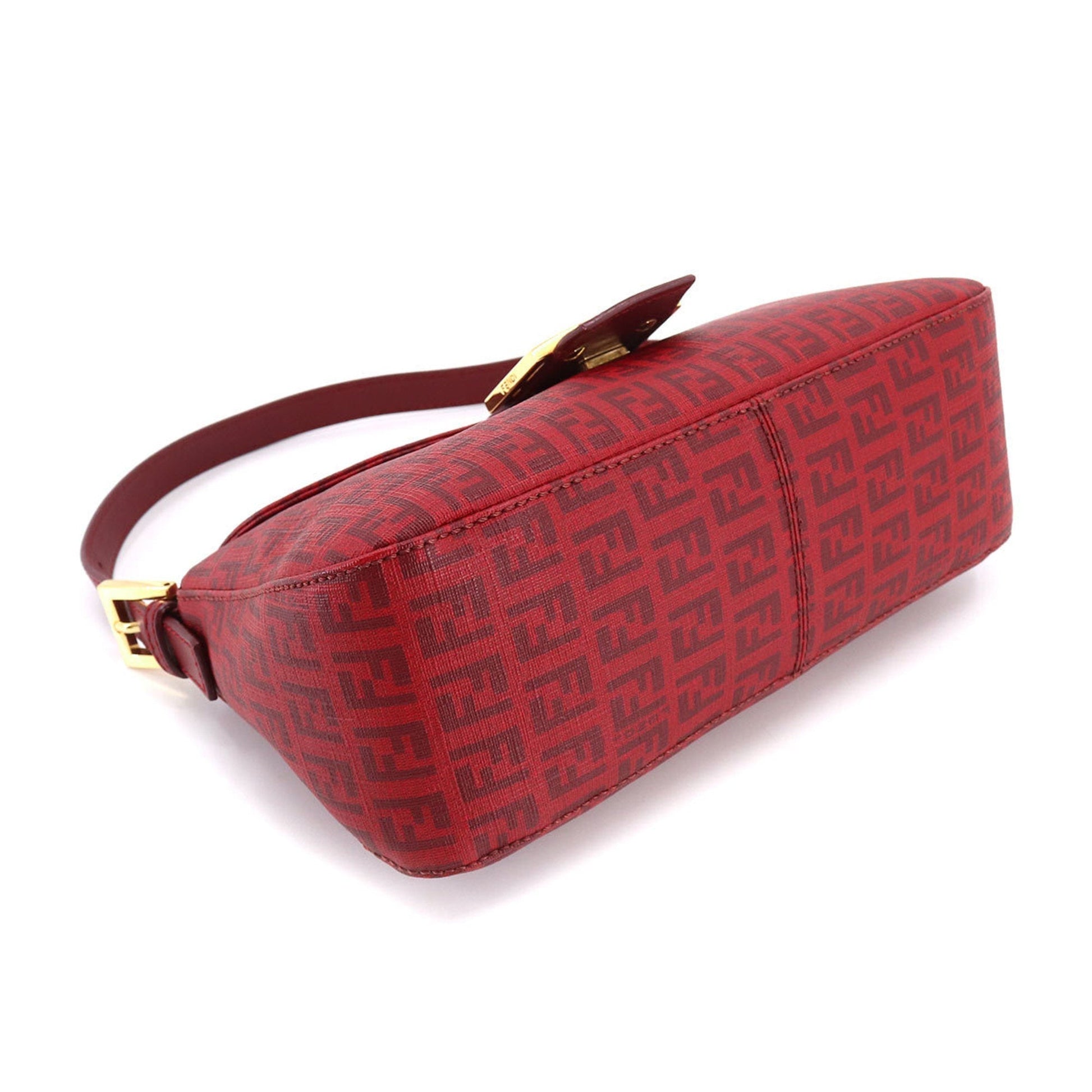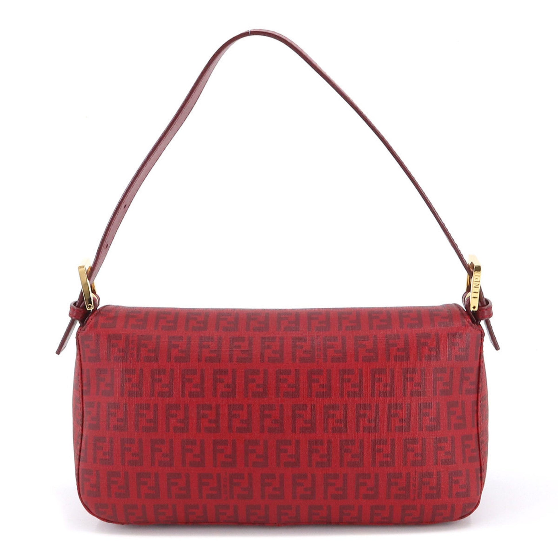 FENDI Zucchino Mamma Baguette Shoulder Bag PVC Leather Red 8BR003 Gold Hardware
