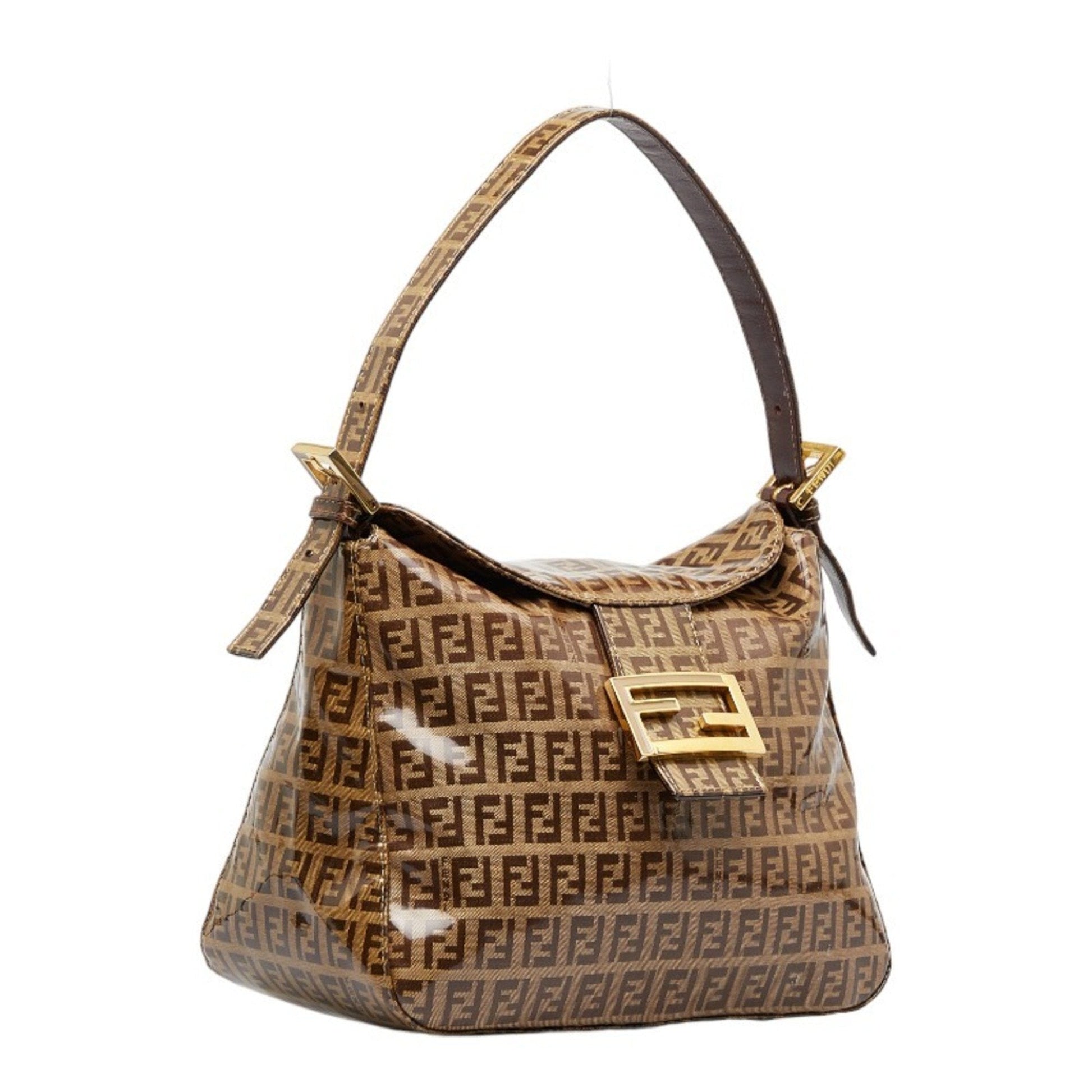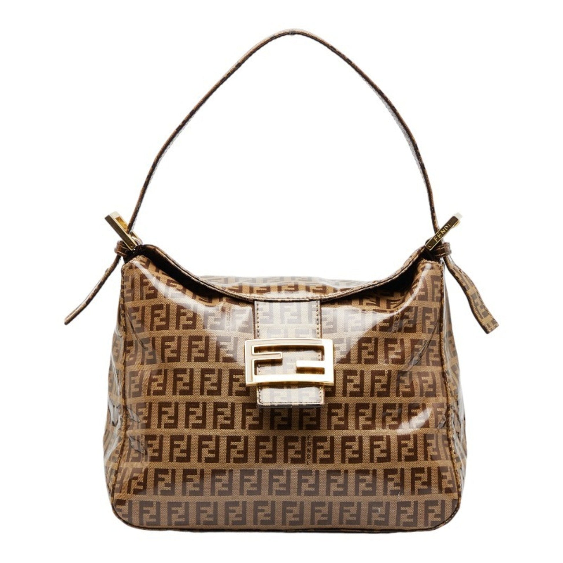 FENDI Zucchino Mamma Bucket Handbag One Shoulder Bag 26426 Brown PVC Women's