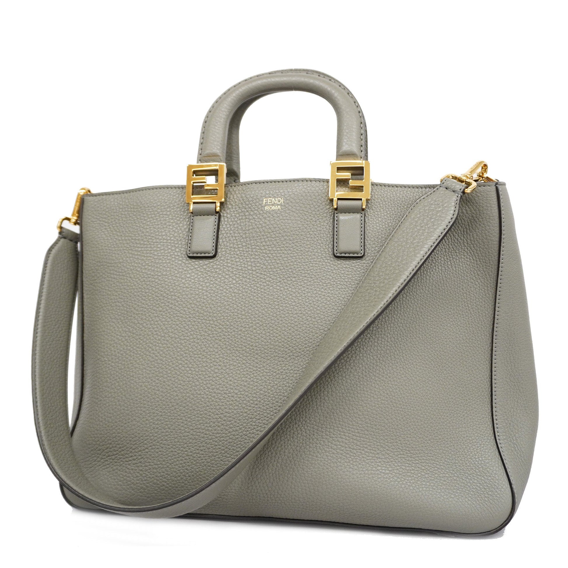 FENDIAuth Selleria 2way Bag Peekaboo Women's Leather Handbag,Shoulder Bag Gray
