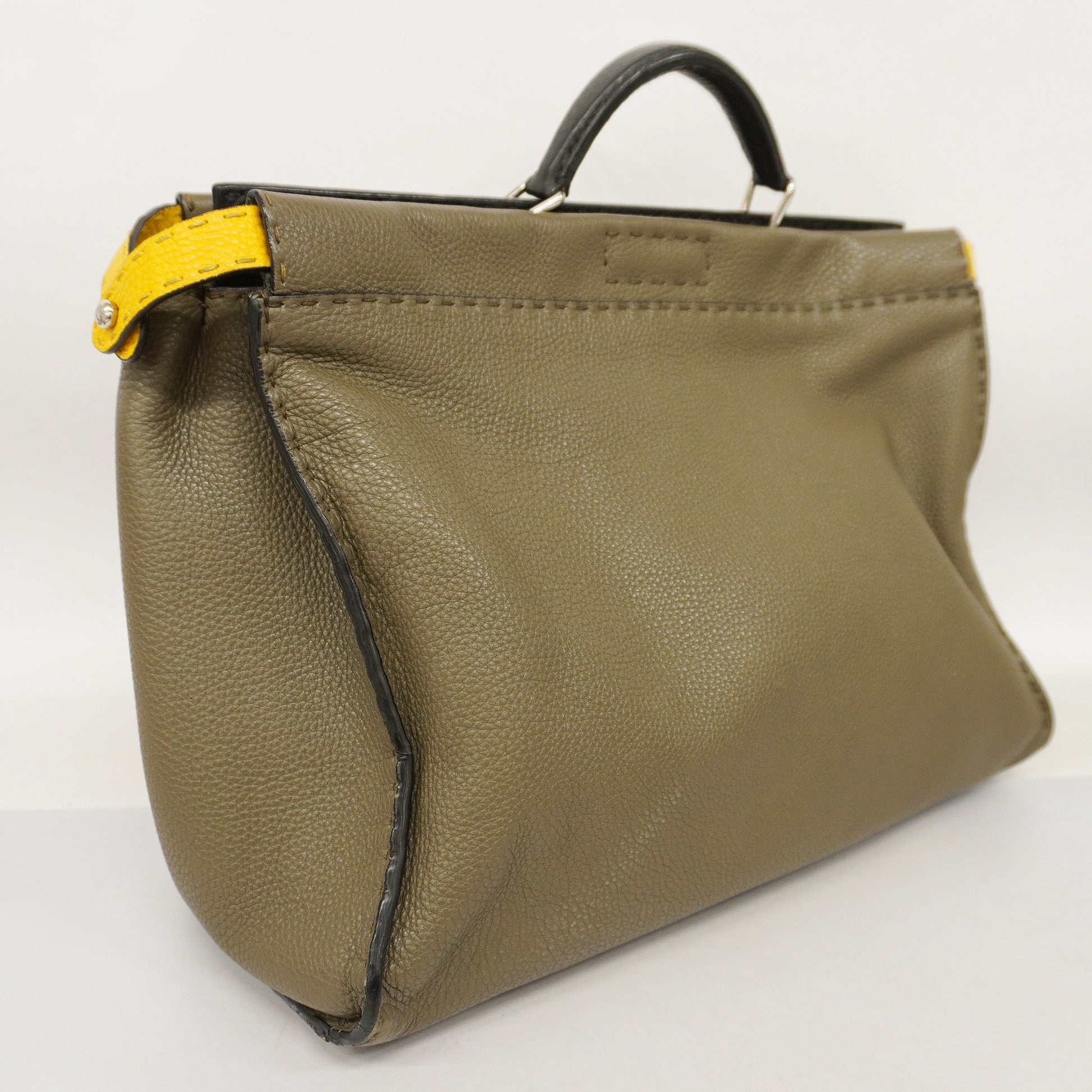 Auth Fendi Selleria Peak Curve Men's Leather Handbag,Shoulder Bag Brown
