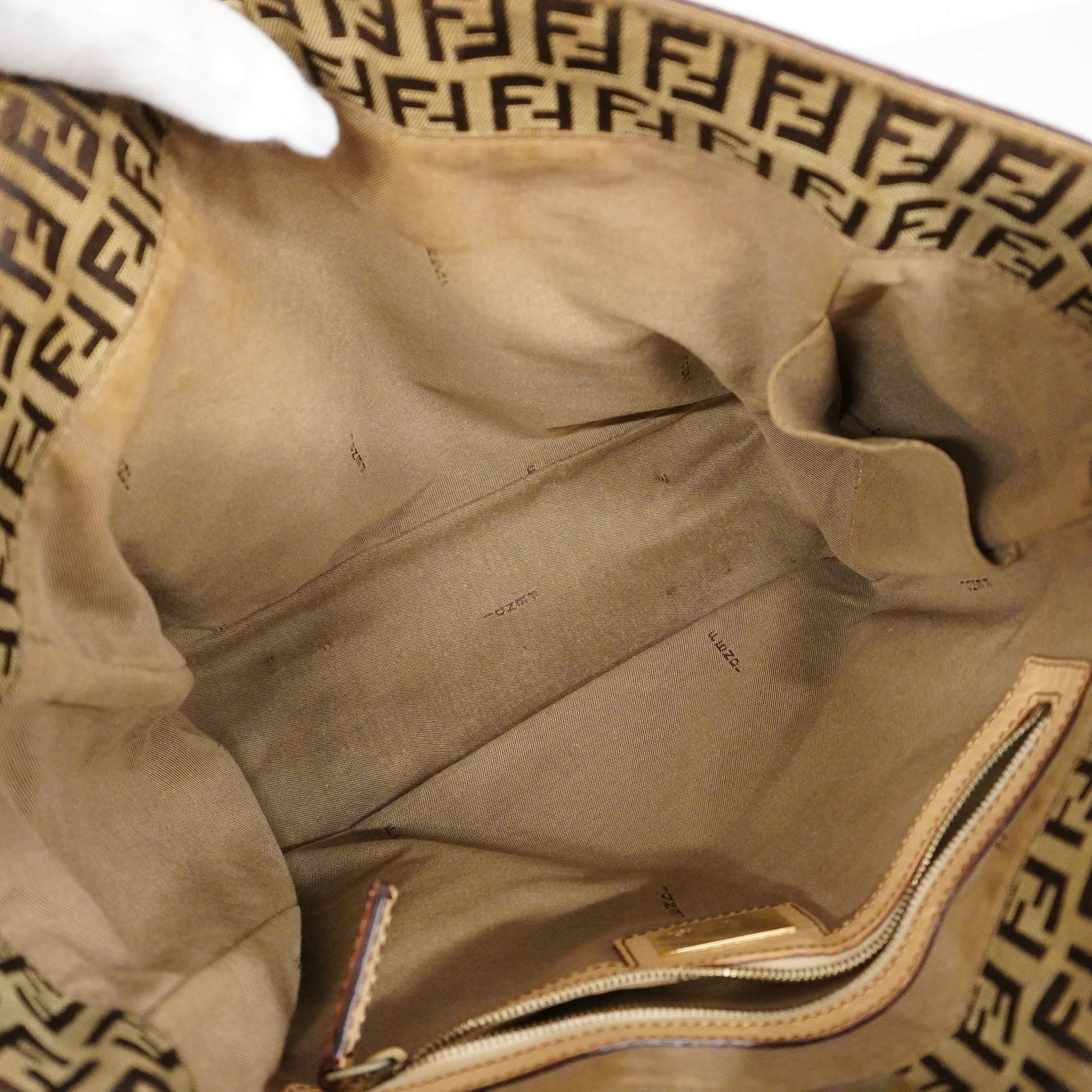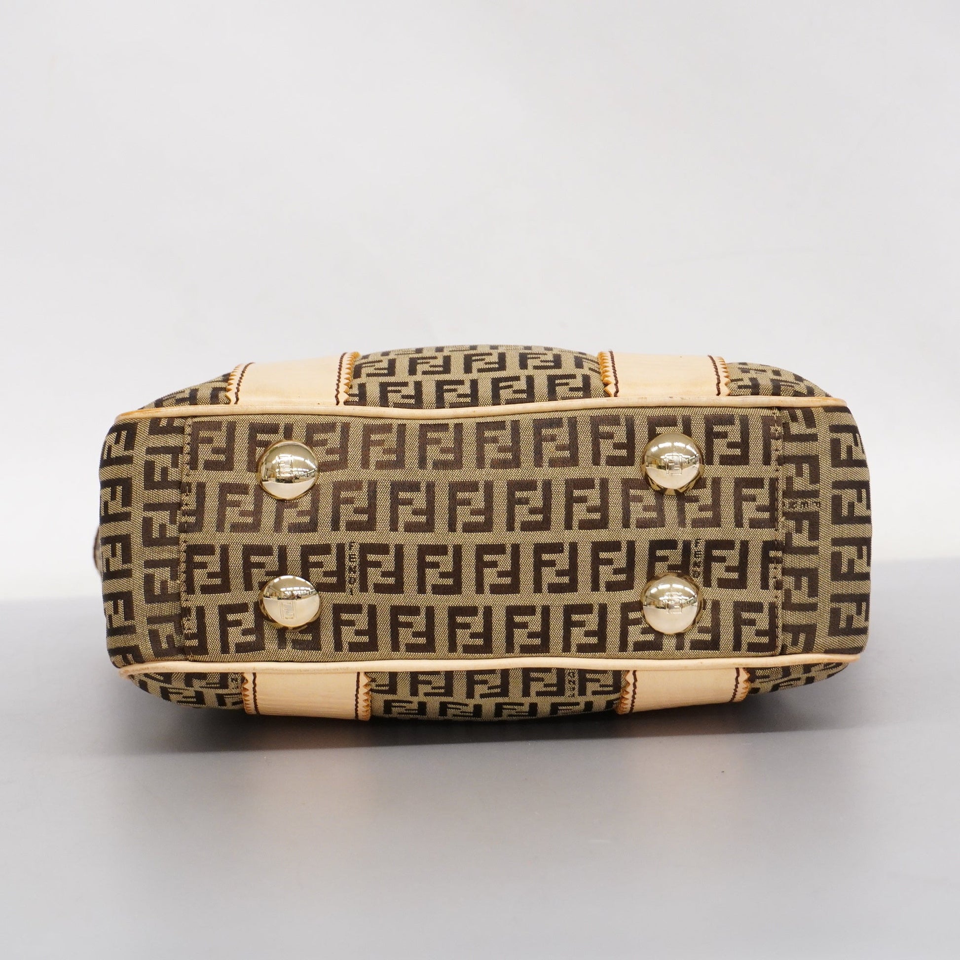 FENDIAuth Zucchino Shoulder Bag Women's Canvas,Leather Tote Bag Beige,Brown