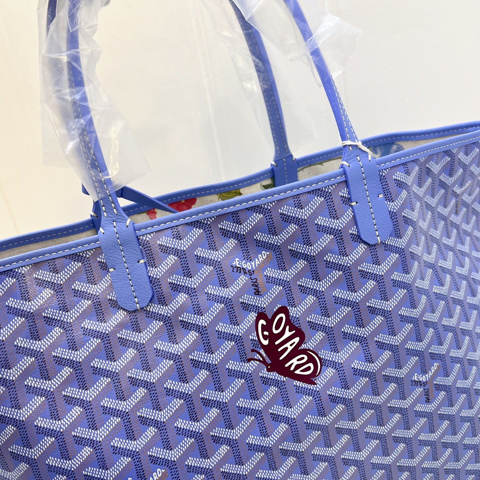 Goyard 2025 Limited Edition Saint Louis PM Tote in Reversible Iris Goyardine Canvas and Floral Cotton / Linen Interior with a Butterfly Hand Painted Stamp