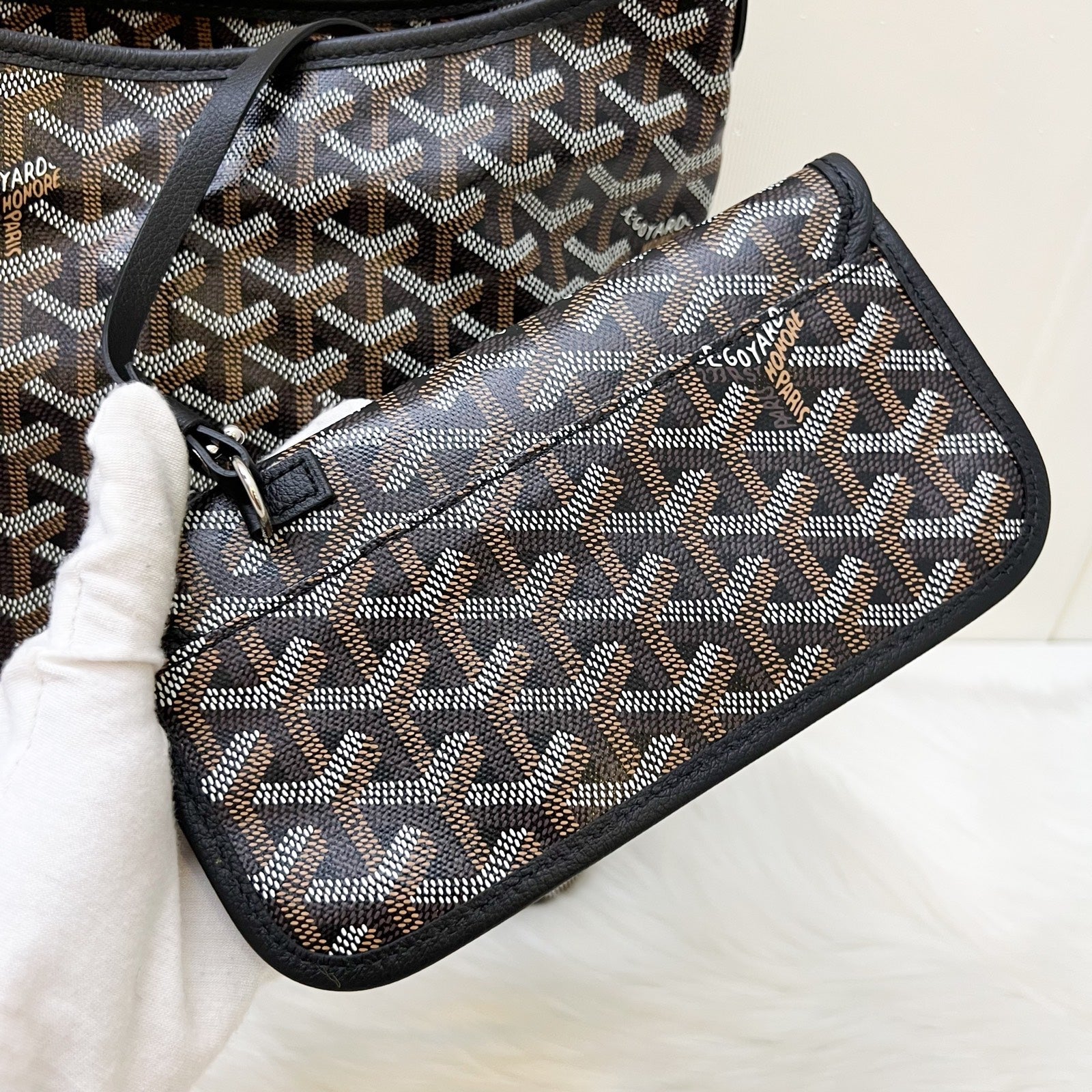 Goyard Boheme PM Hobo Bag in Black Signature Goyardine Canvas with a Red Heart Stamp