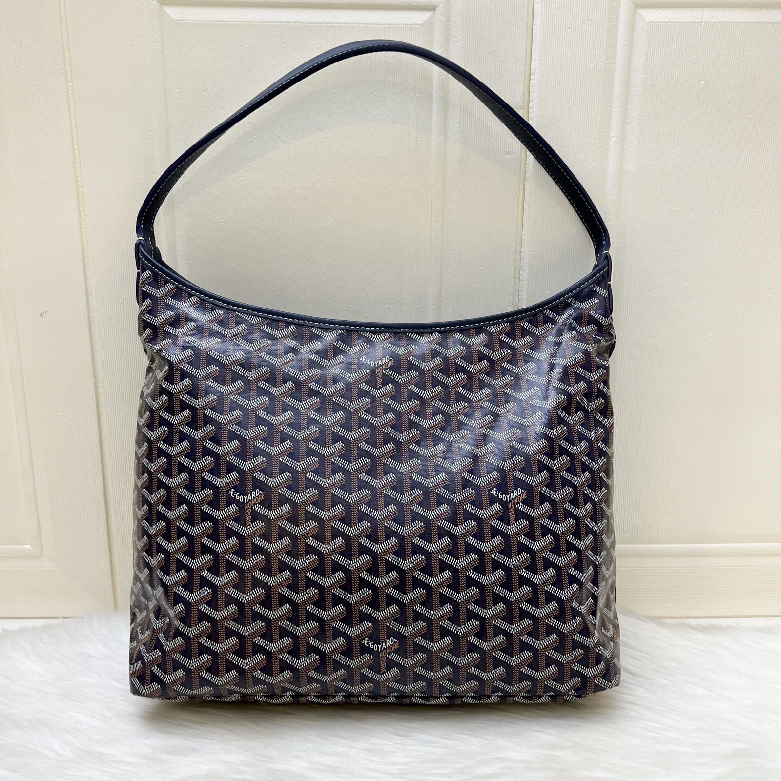 Goyard Boheme PM Hobo Bag in Bleu Marine Signature Goyardine Canvas with a Blue Heart Stamp on Pouch