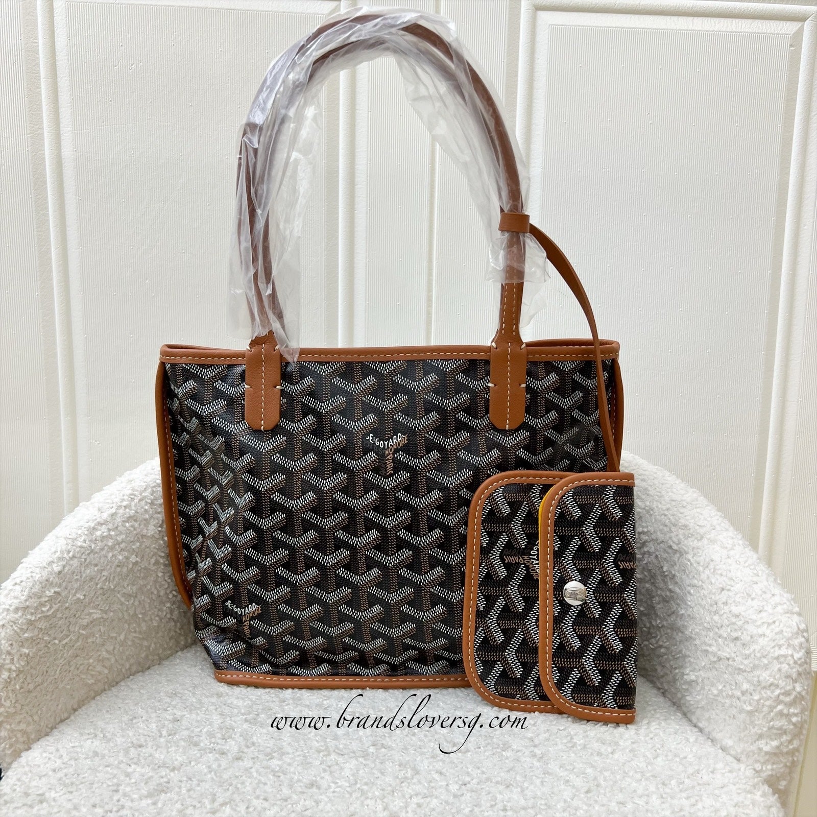 Goyard Mini Anjou in Black Goyardine Canvas with Camel Trim