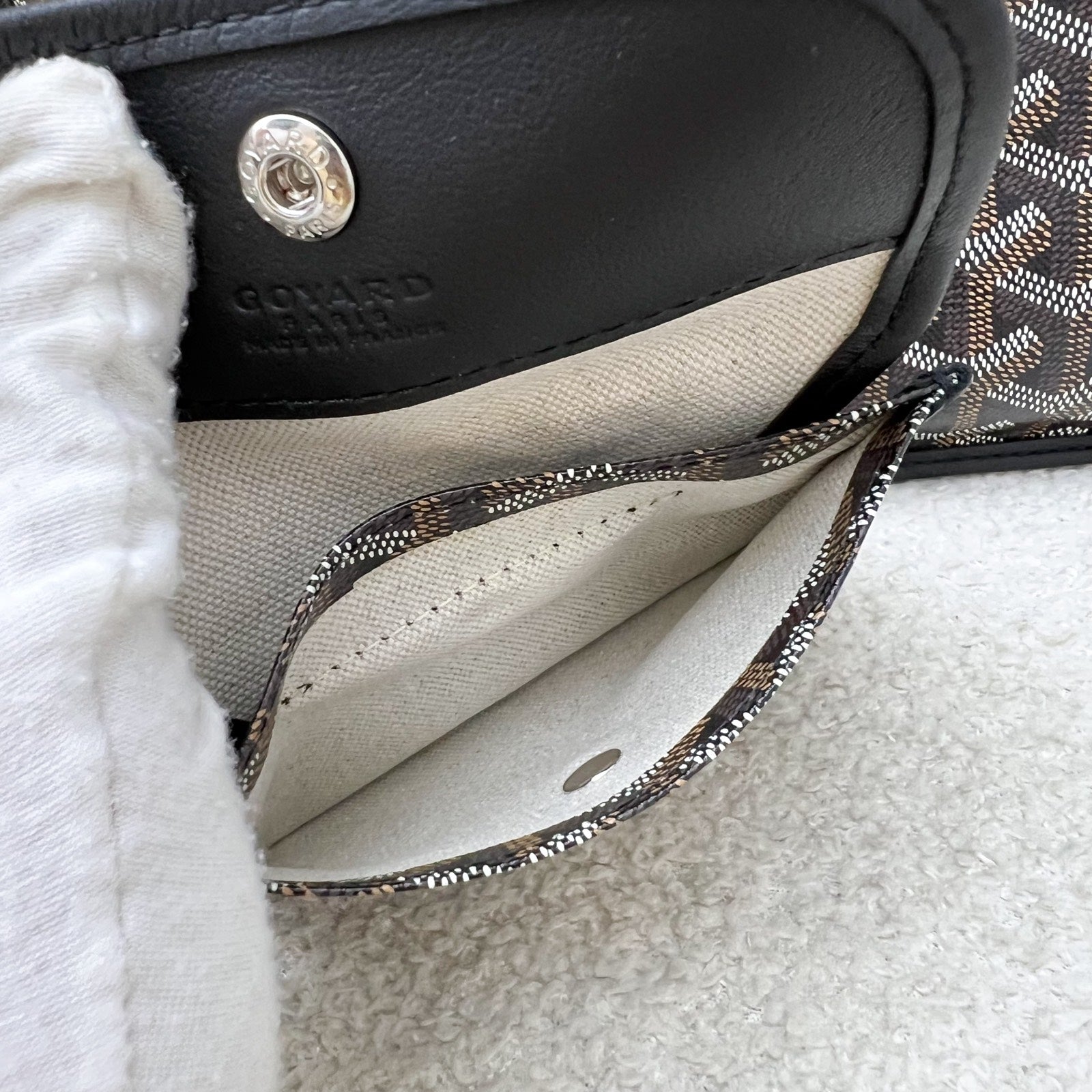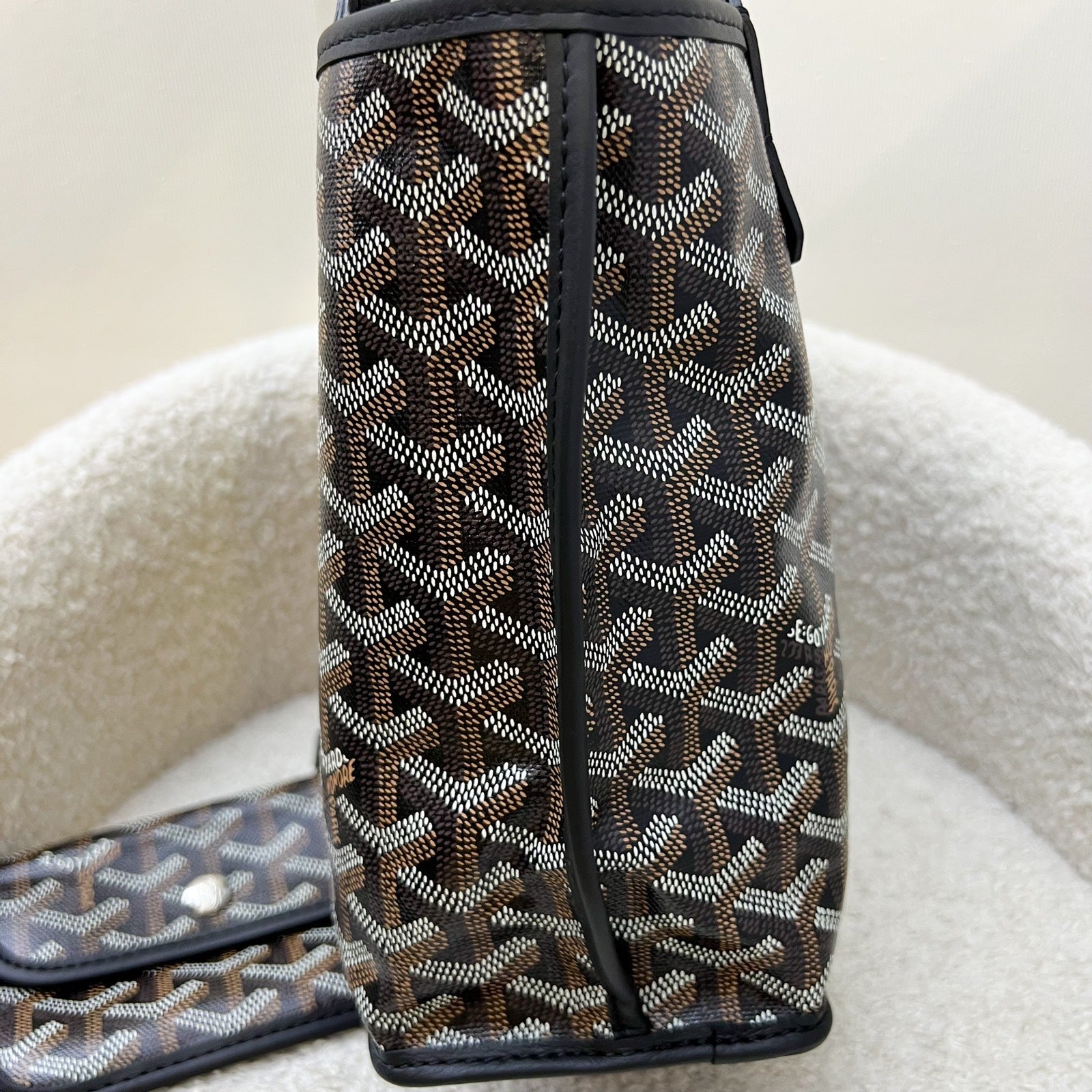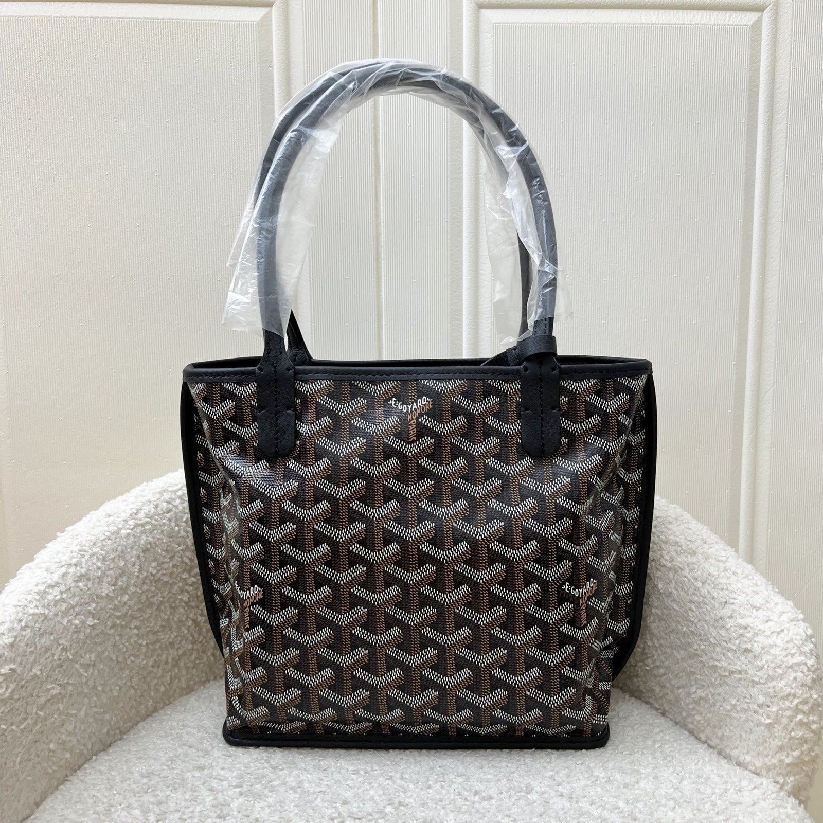Goyard Mini Anjou Tote Bag in Black Goyardine Canvas and Leather with a Grey Heart Stamp (Premarquage Coeur)