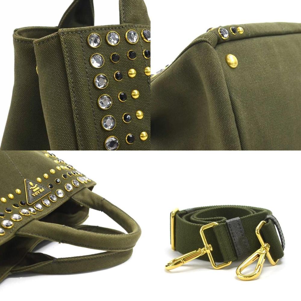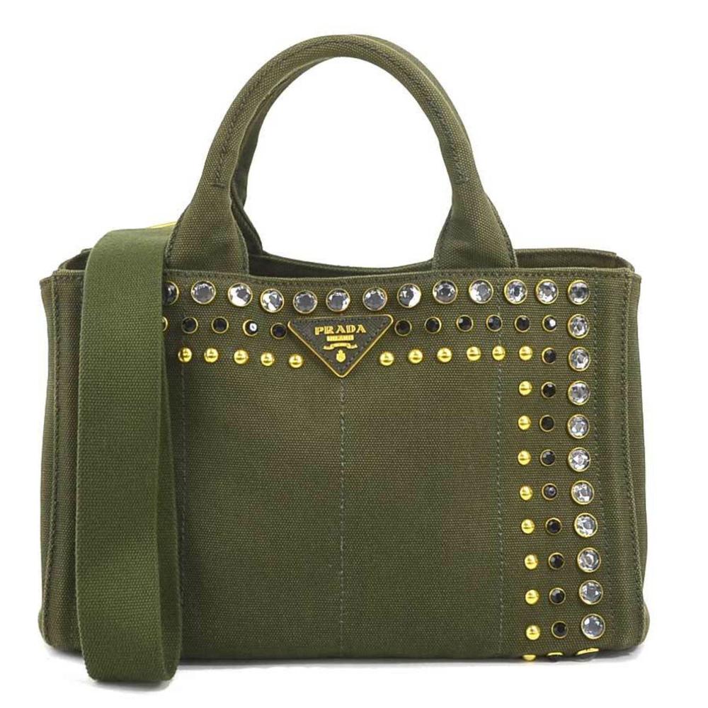 Prada Handbag Shoulder Bag Canapa Canvas Khaki Gold Ladies E58565g