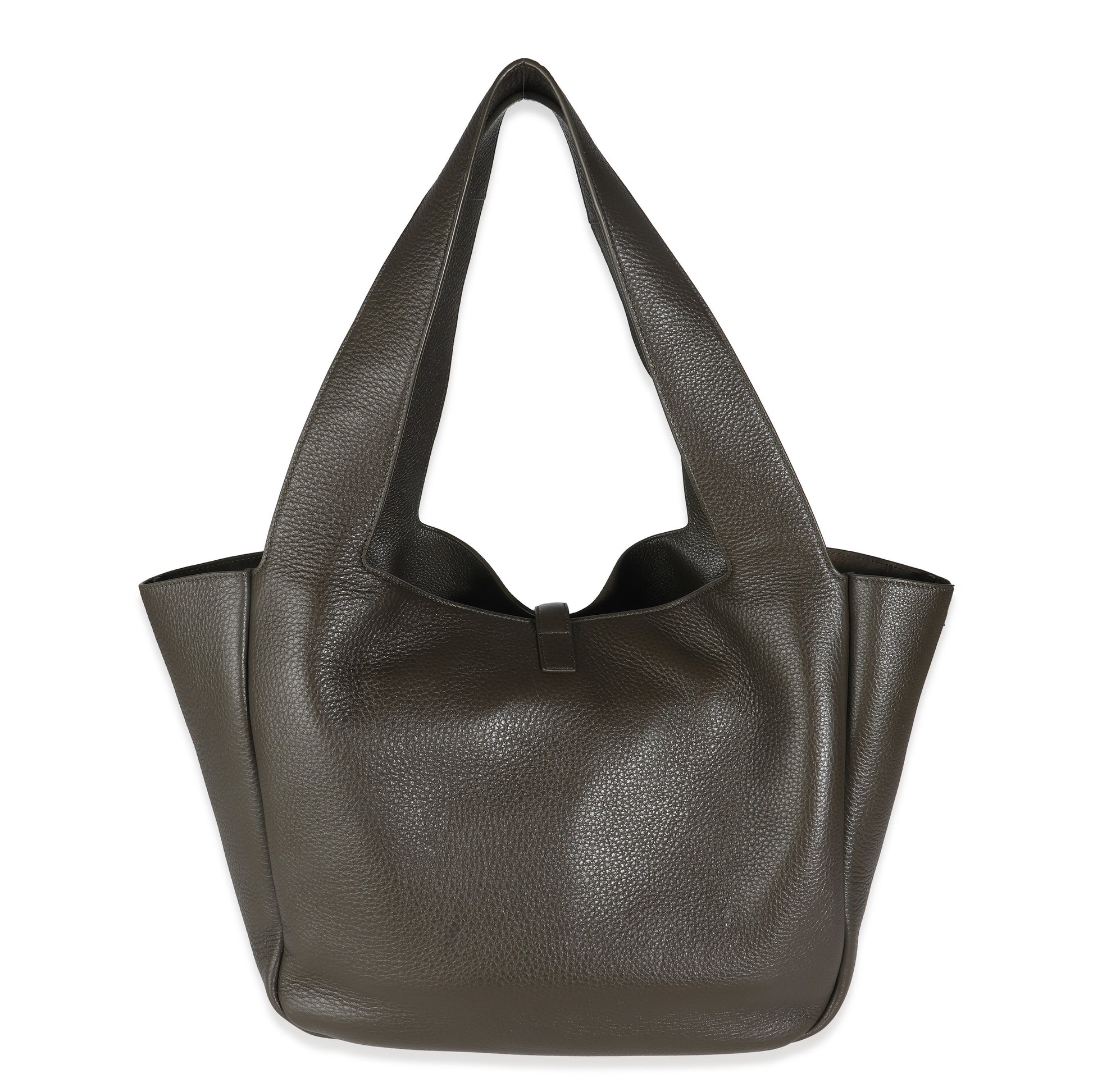 Take a look at this immaculate SAINT LAURENT tote crafted from grained goatskin. The beautiful grey color adds a touch of sophistication to your wardrobe. It comes with a dustbag, care booklet, and tag. The sturdy leather material and spacious interior make it perfect for everyday use. Made in Italy with dimensions of 13 x 11 x 5.8, this tote is a must-have for any fashion-forward individual. Don't miss out on this luxurious piece.