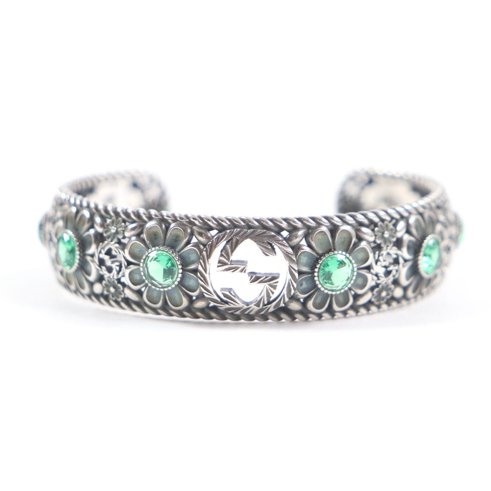 Item name : GUCCI Crystal Floral G Bangle Silver Bracelet