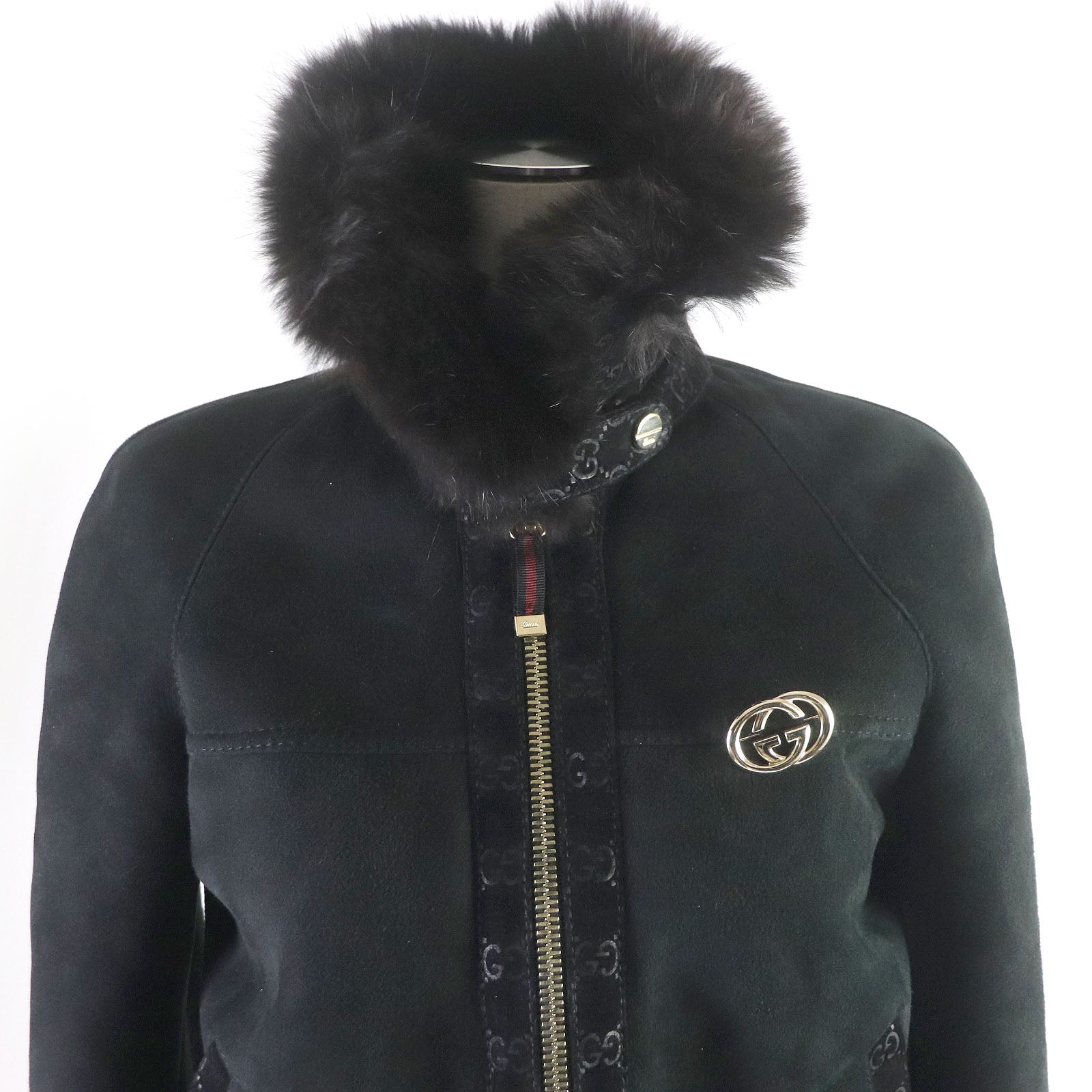 Gucci Lamb Leather Fox Fur Jacket Black 40