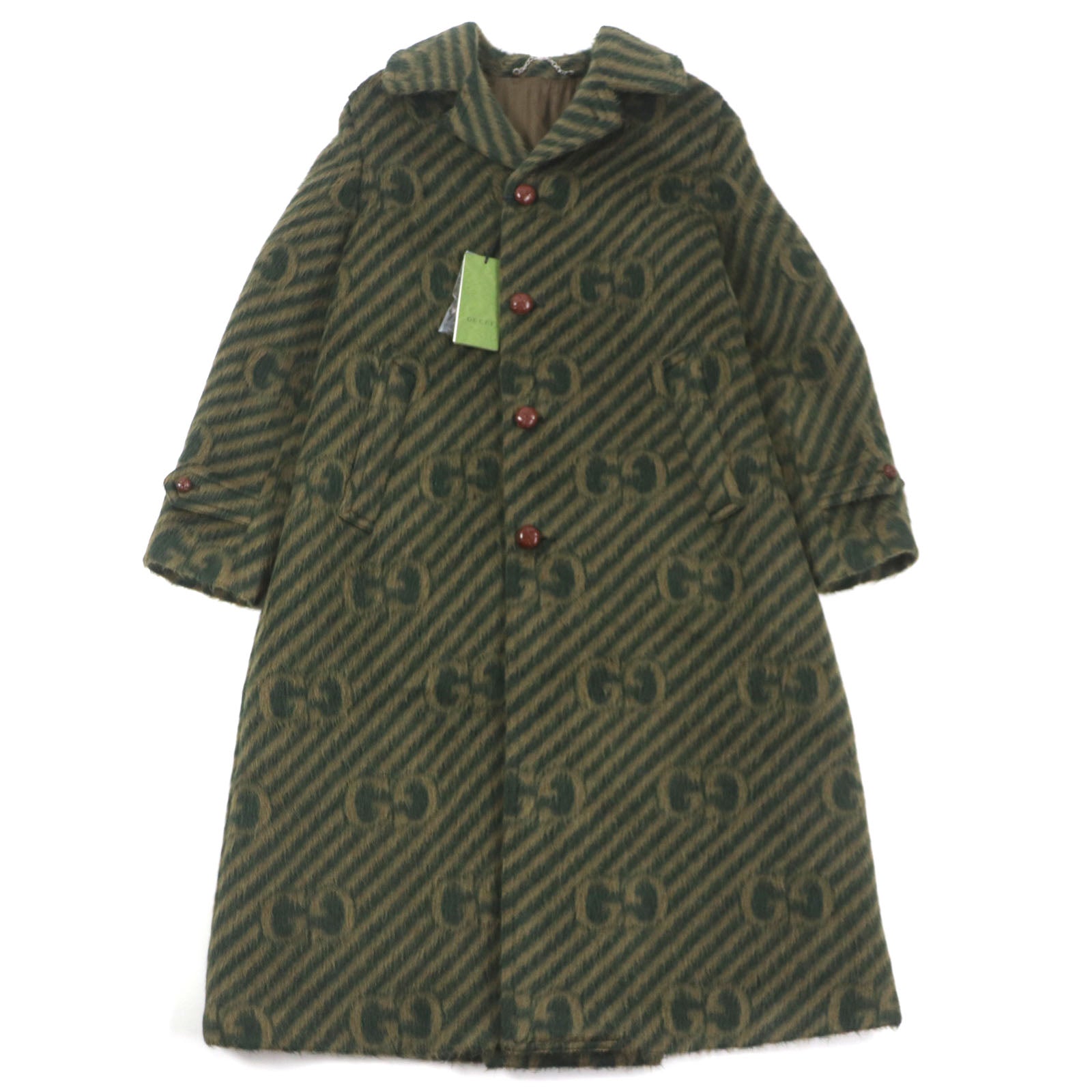 GUCCI Llama Wool GG Stripe Coat Green 44