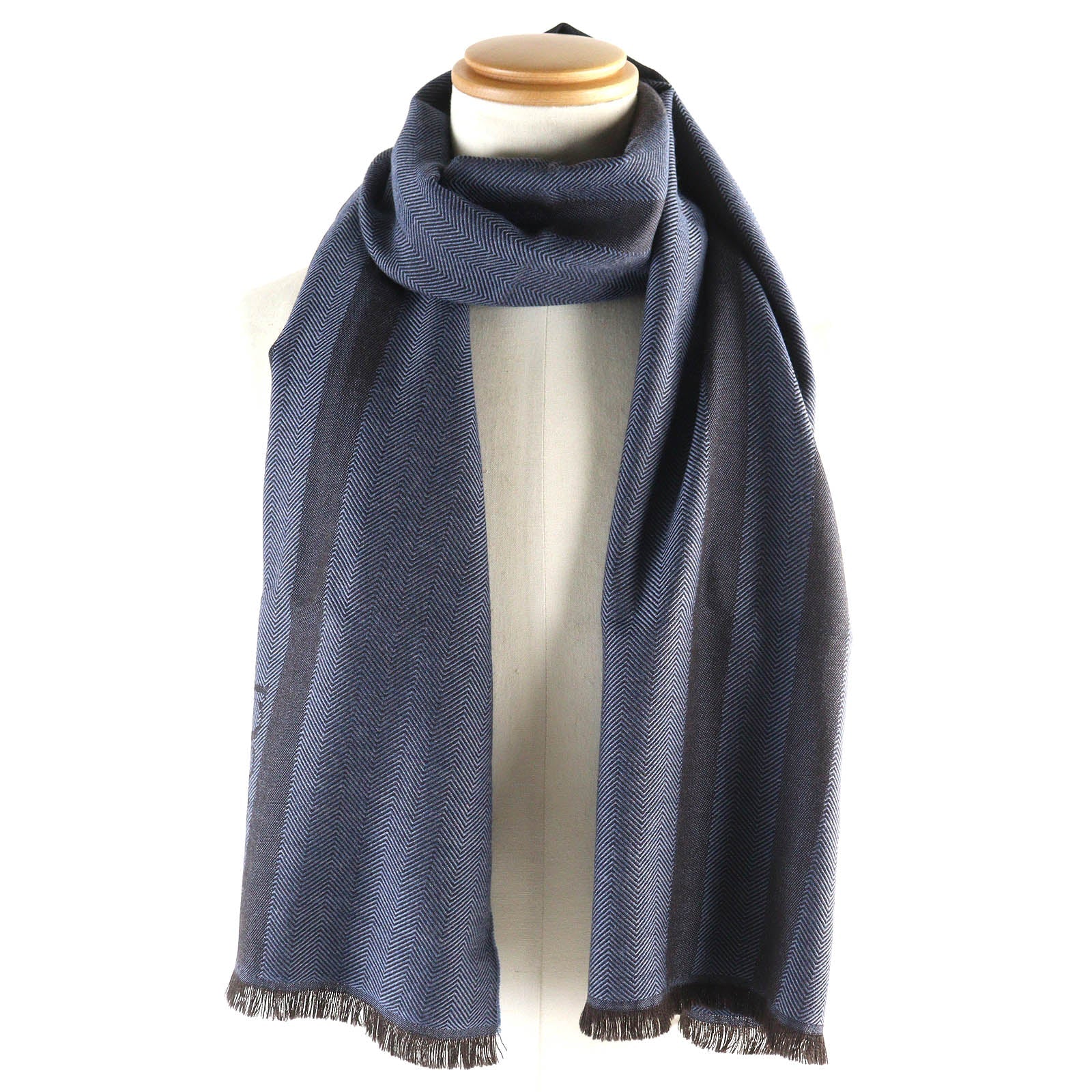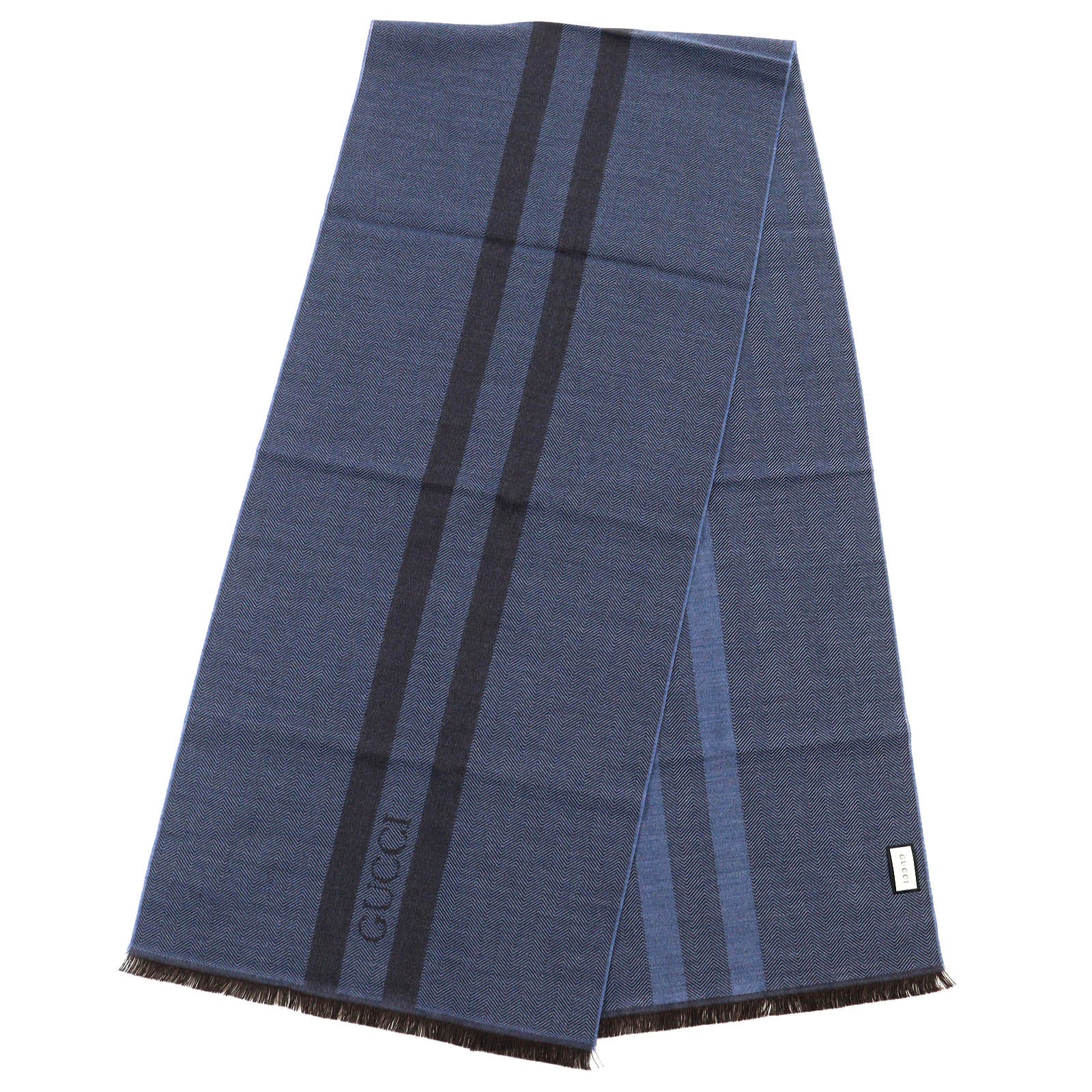 Item name : GUCCI Wool Herringbone Logo Scarf Blue Brown