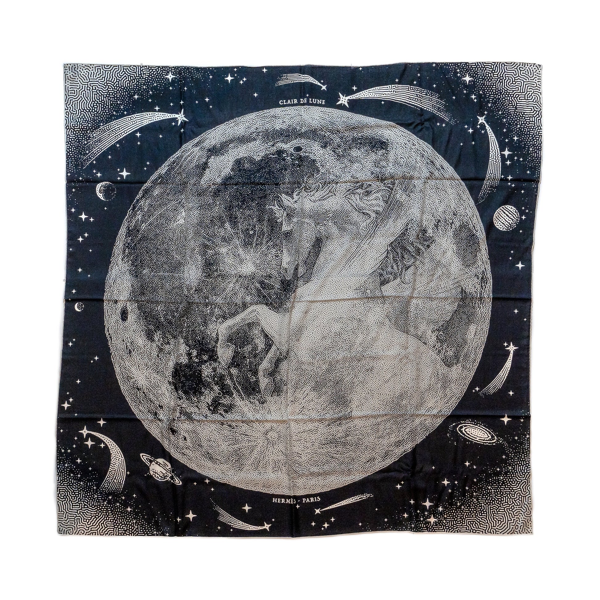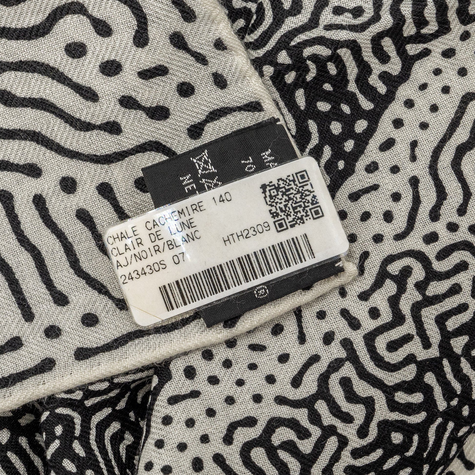 Hermes 140cm Clair de Lune scarf/ shawl cashmere / silk black/ white