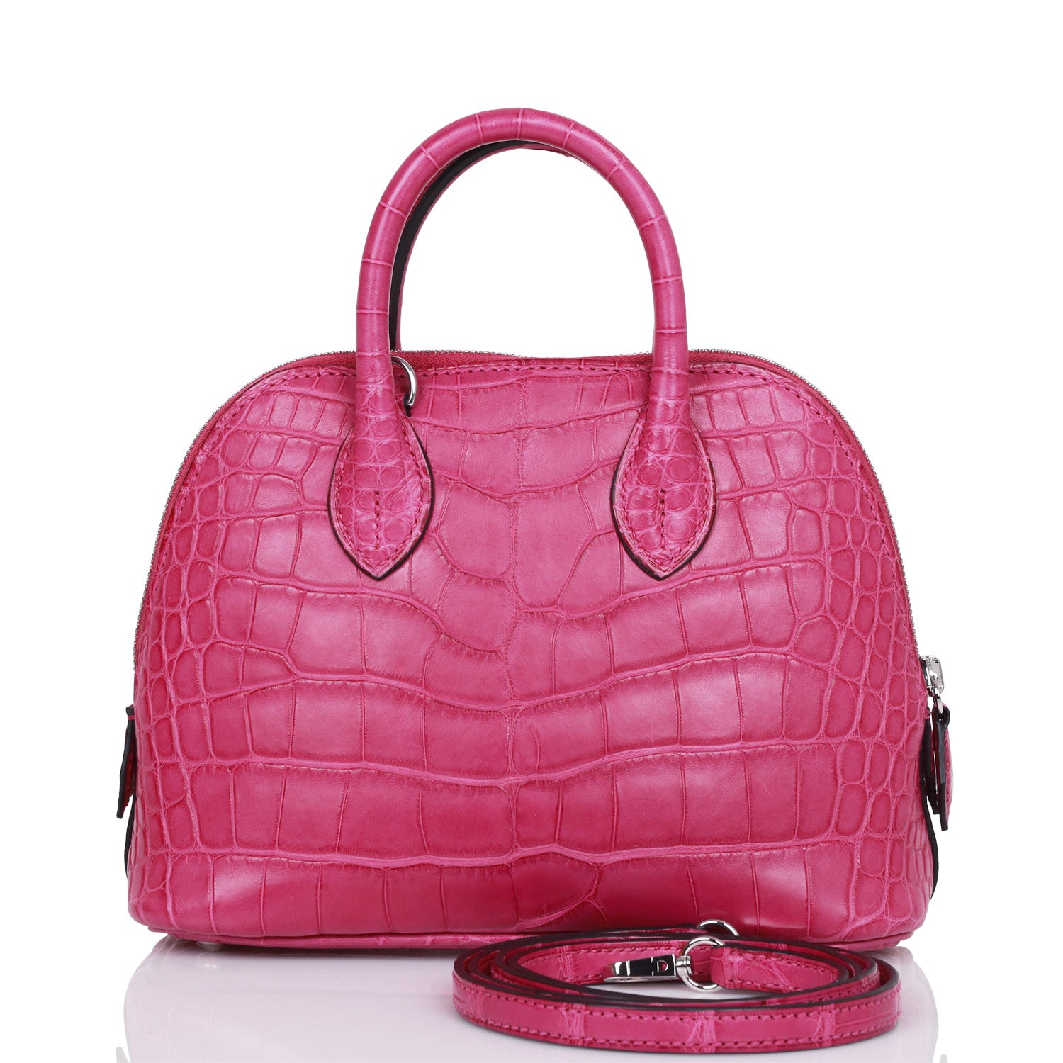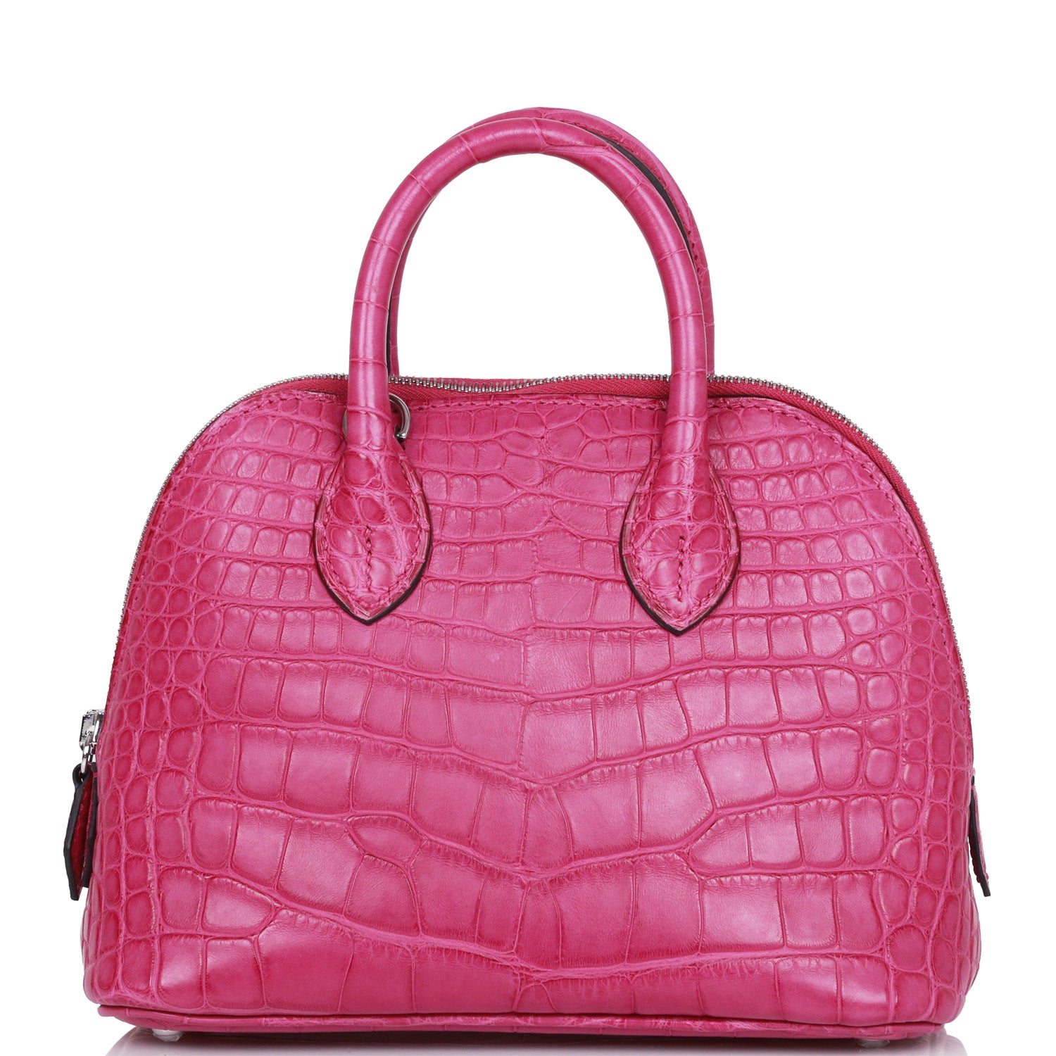 Hermes 1923 Bolide Mini Rose Scheherazade Matte Alligator Palladium Hardware