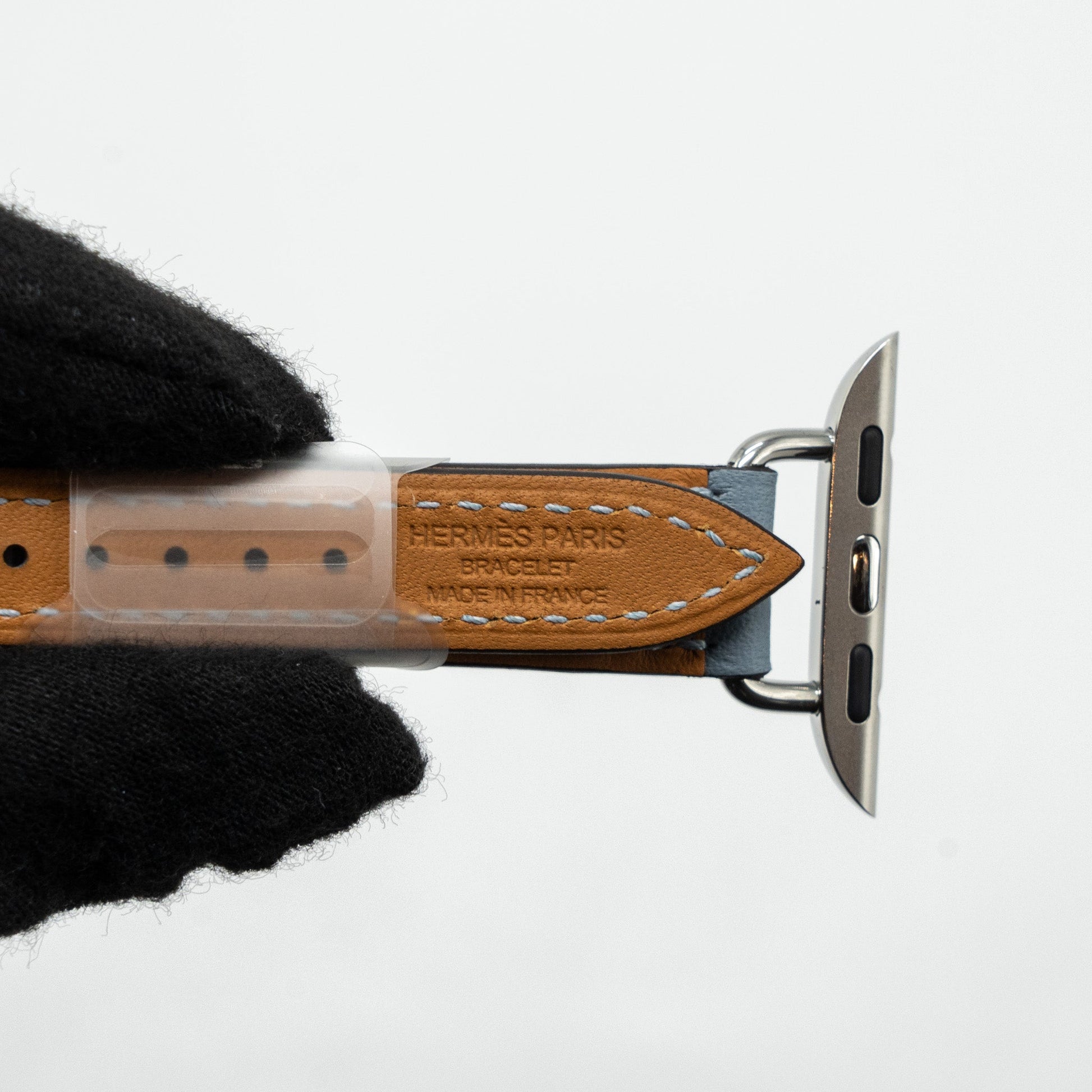 Hermes 41mm double tour Apple Watch band blue lin SHW Stamp U