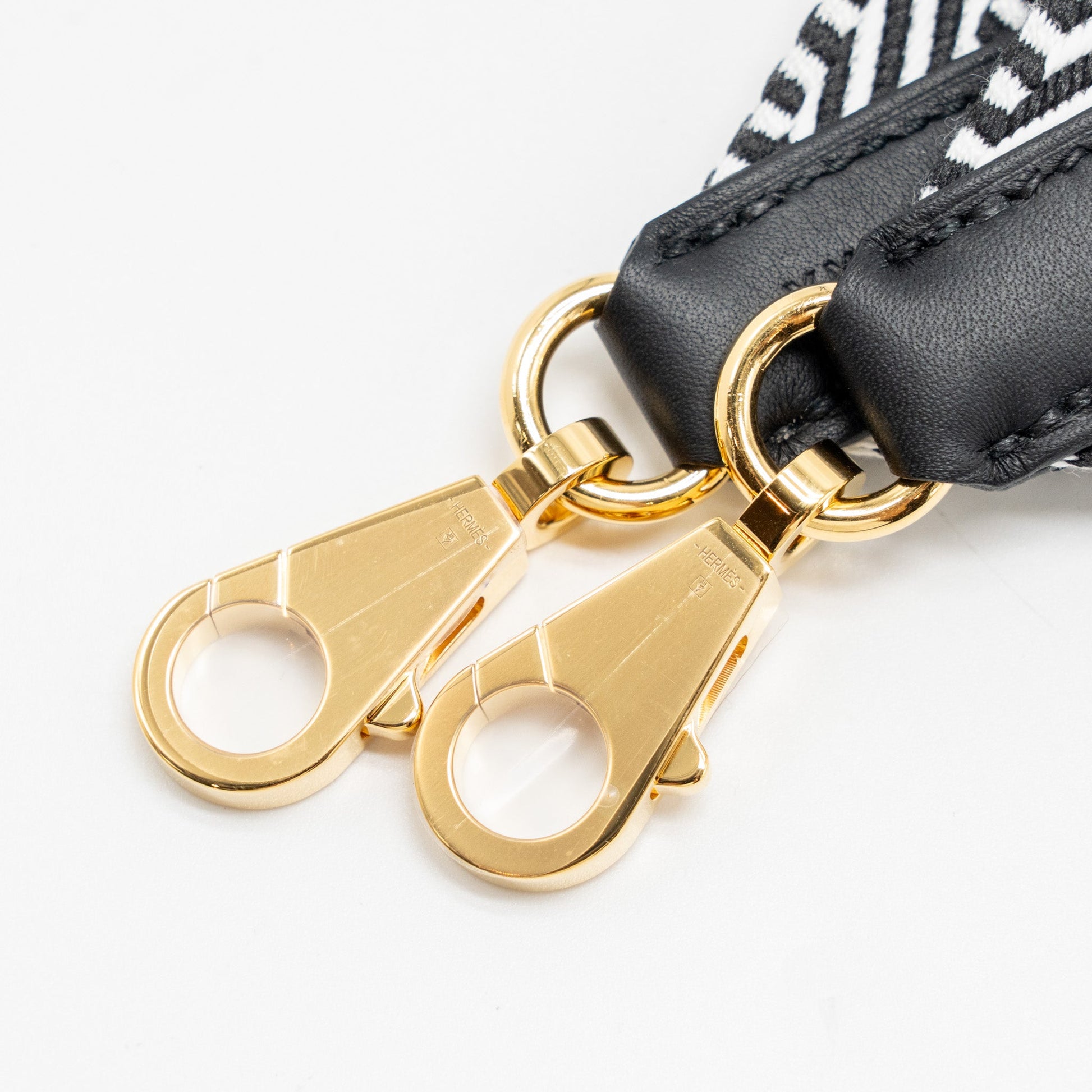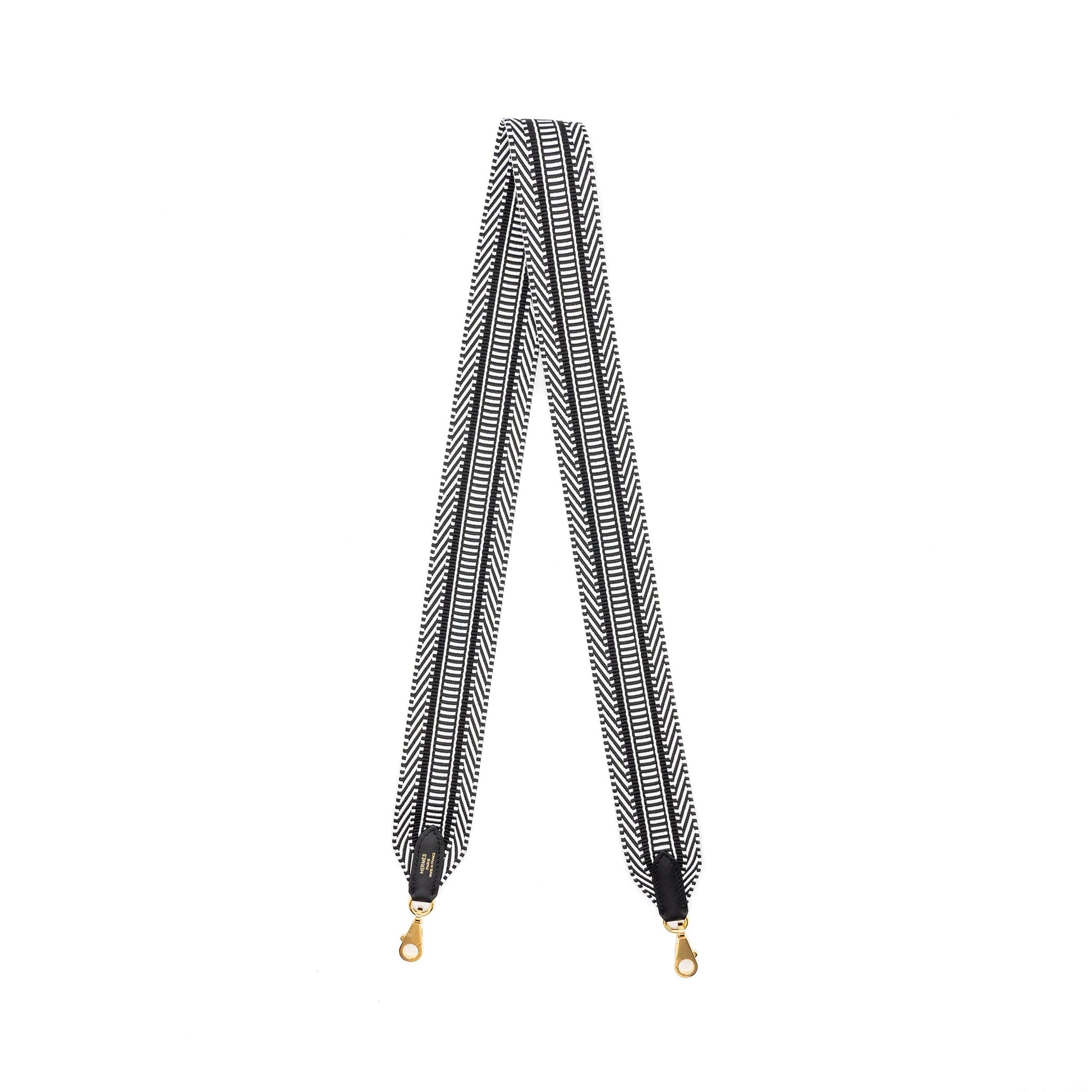 Hermes 50mm Sangle Cavale Bag Strap Swift/Canvas Black/White GHW Stamp B