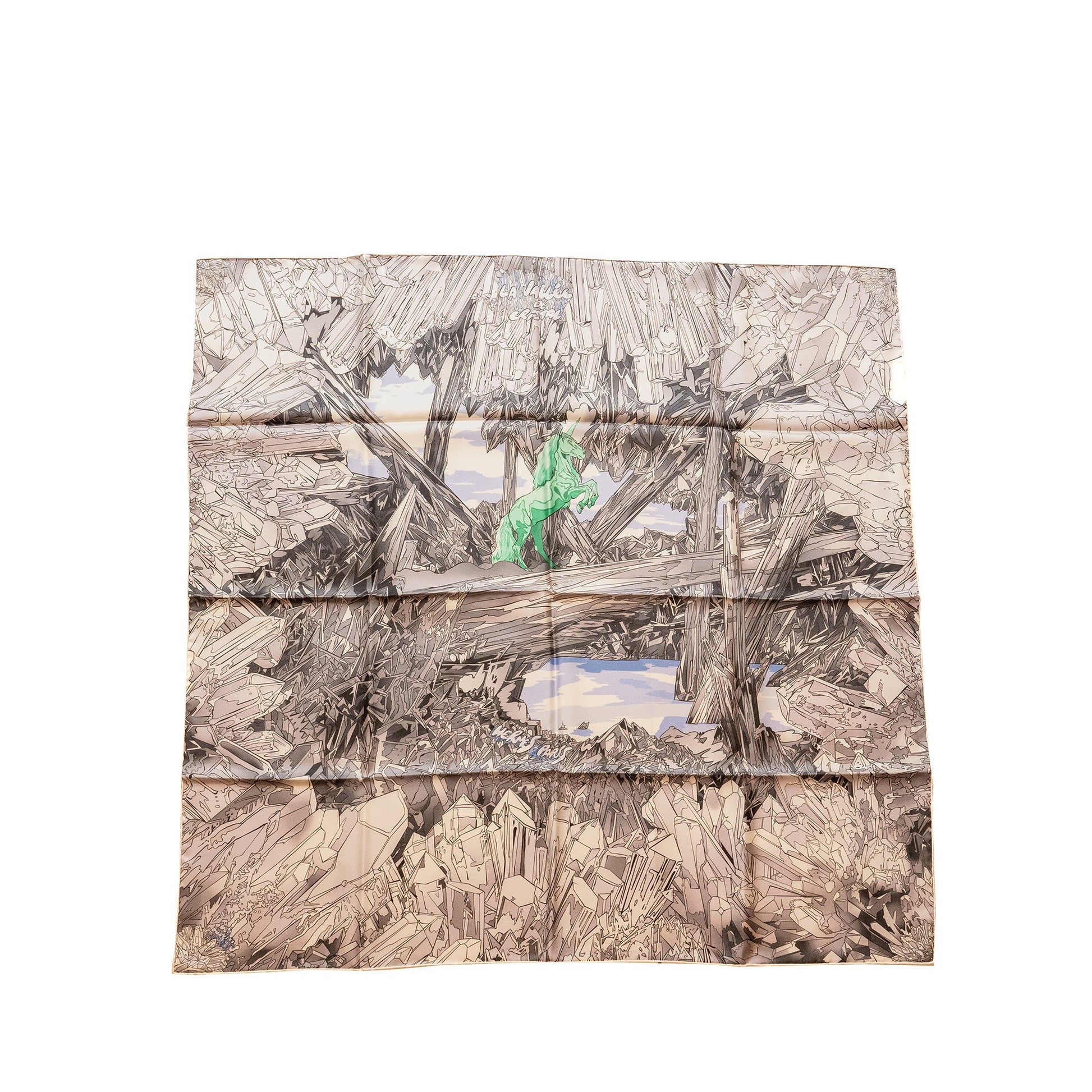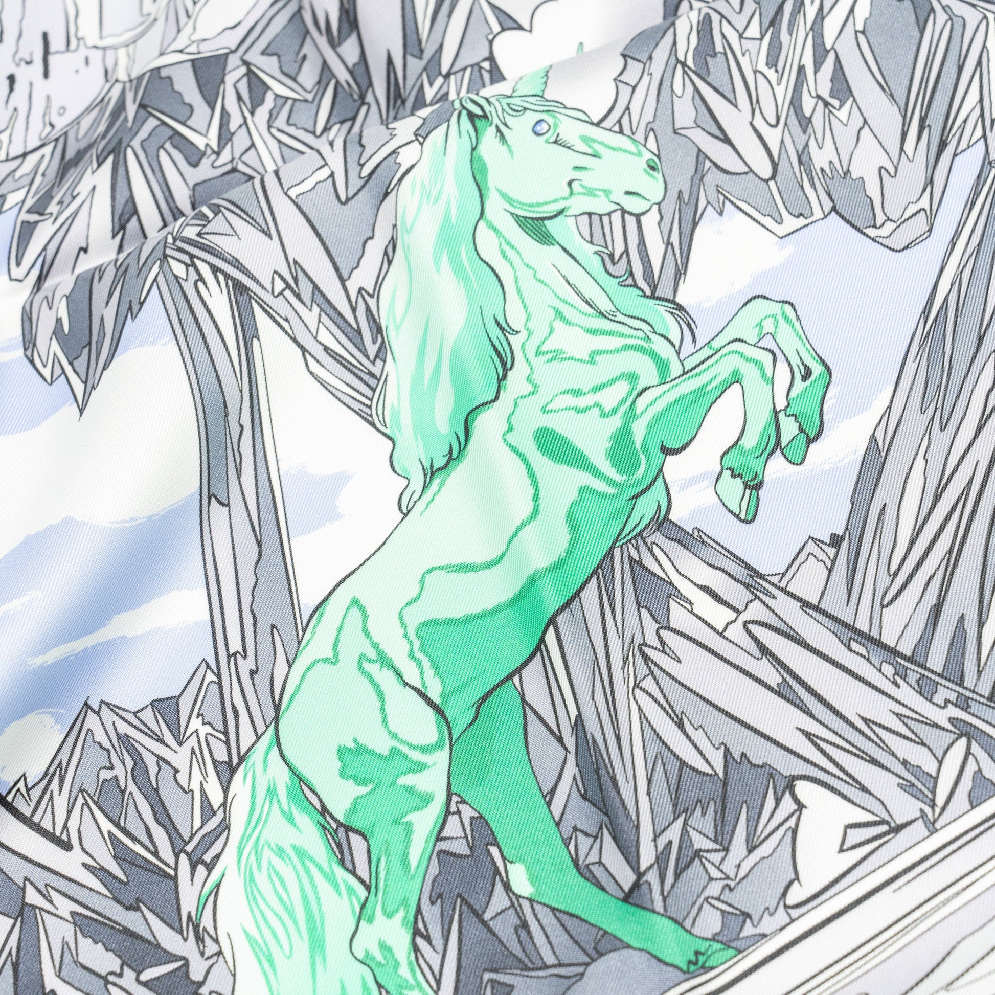 Hermes 90*90 cm silk scarf La Vallee De Cristal Gris/Parme/Menthol