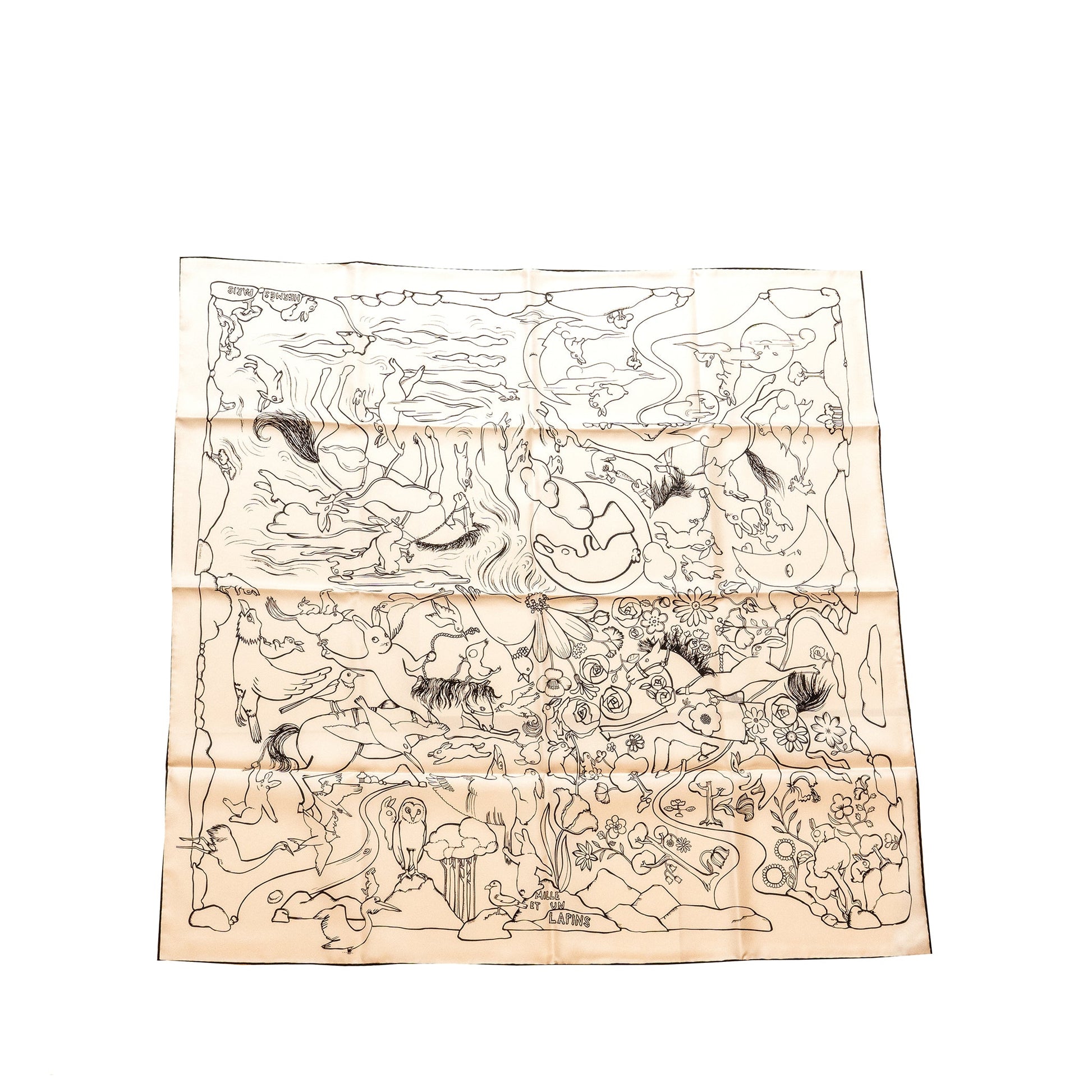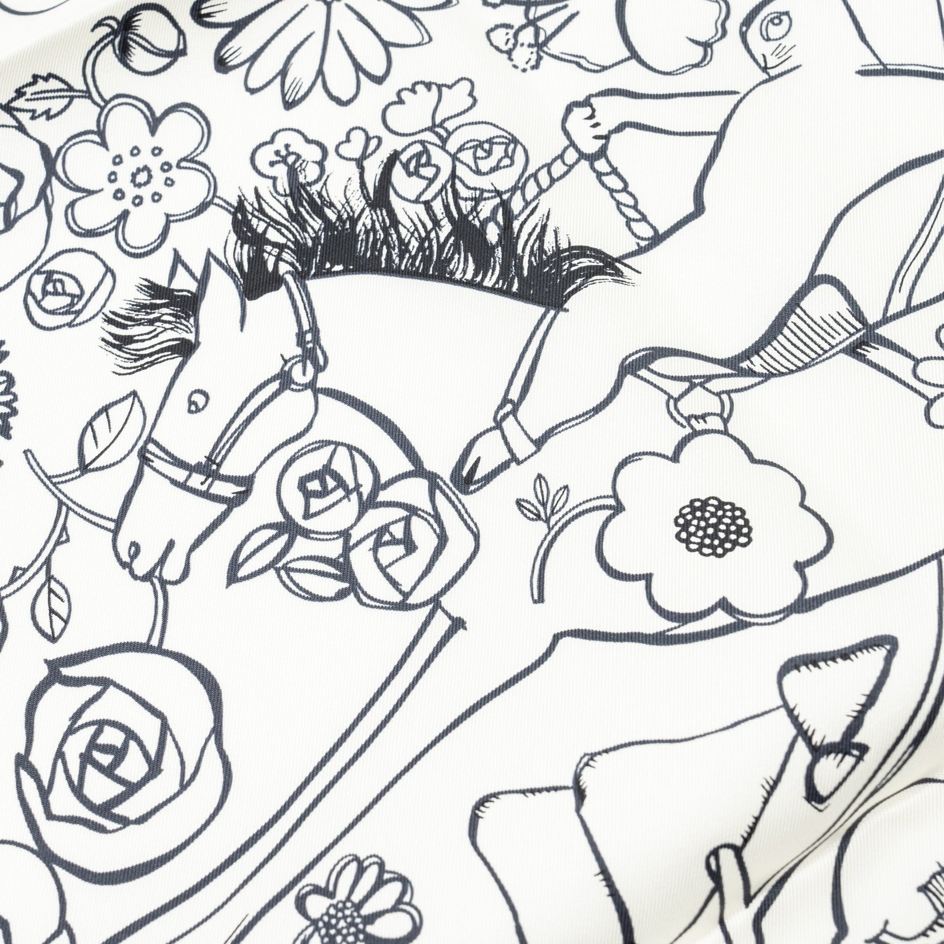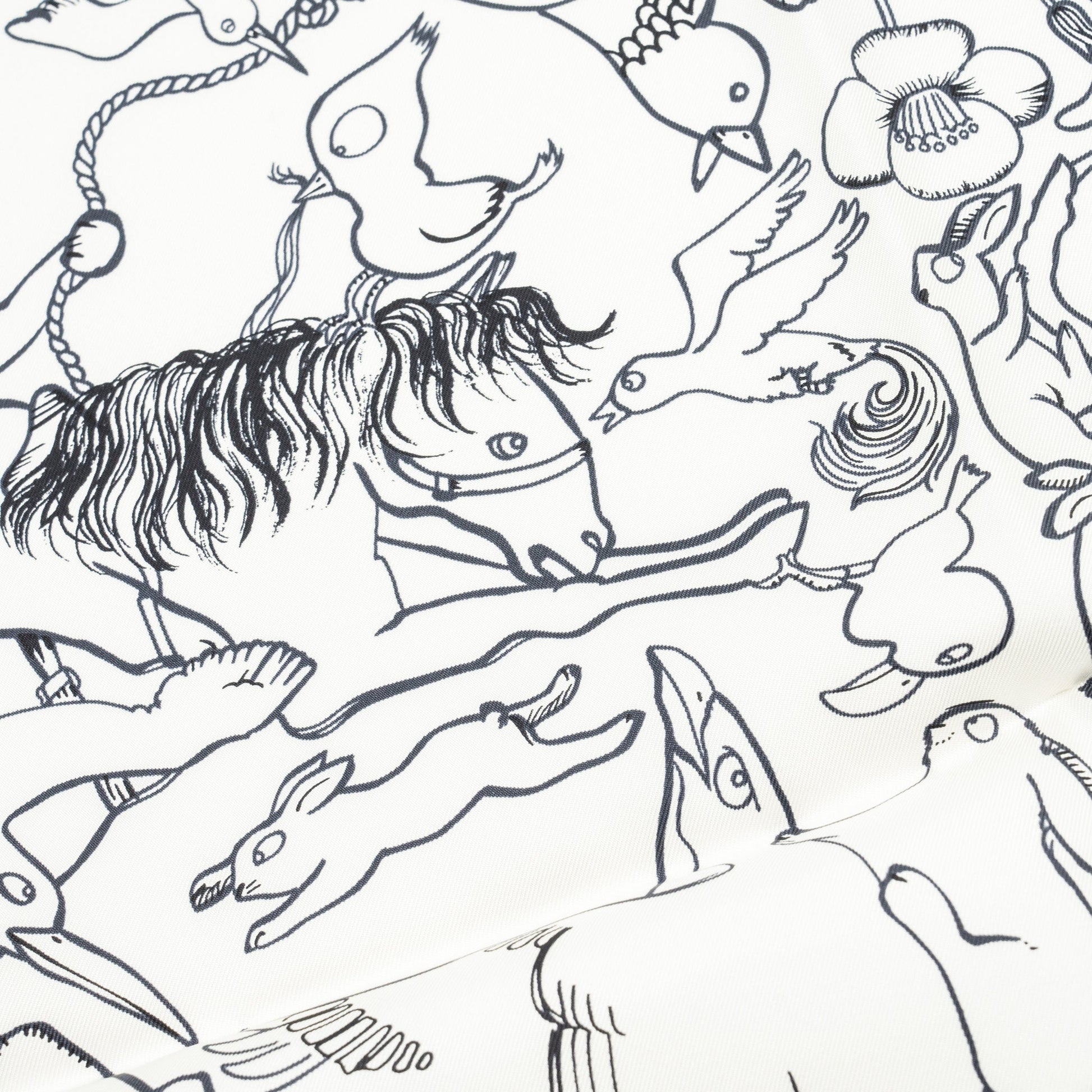 Hermes 90*90 silk scarf Mille et un Lapins white/ black