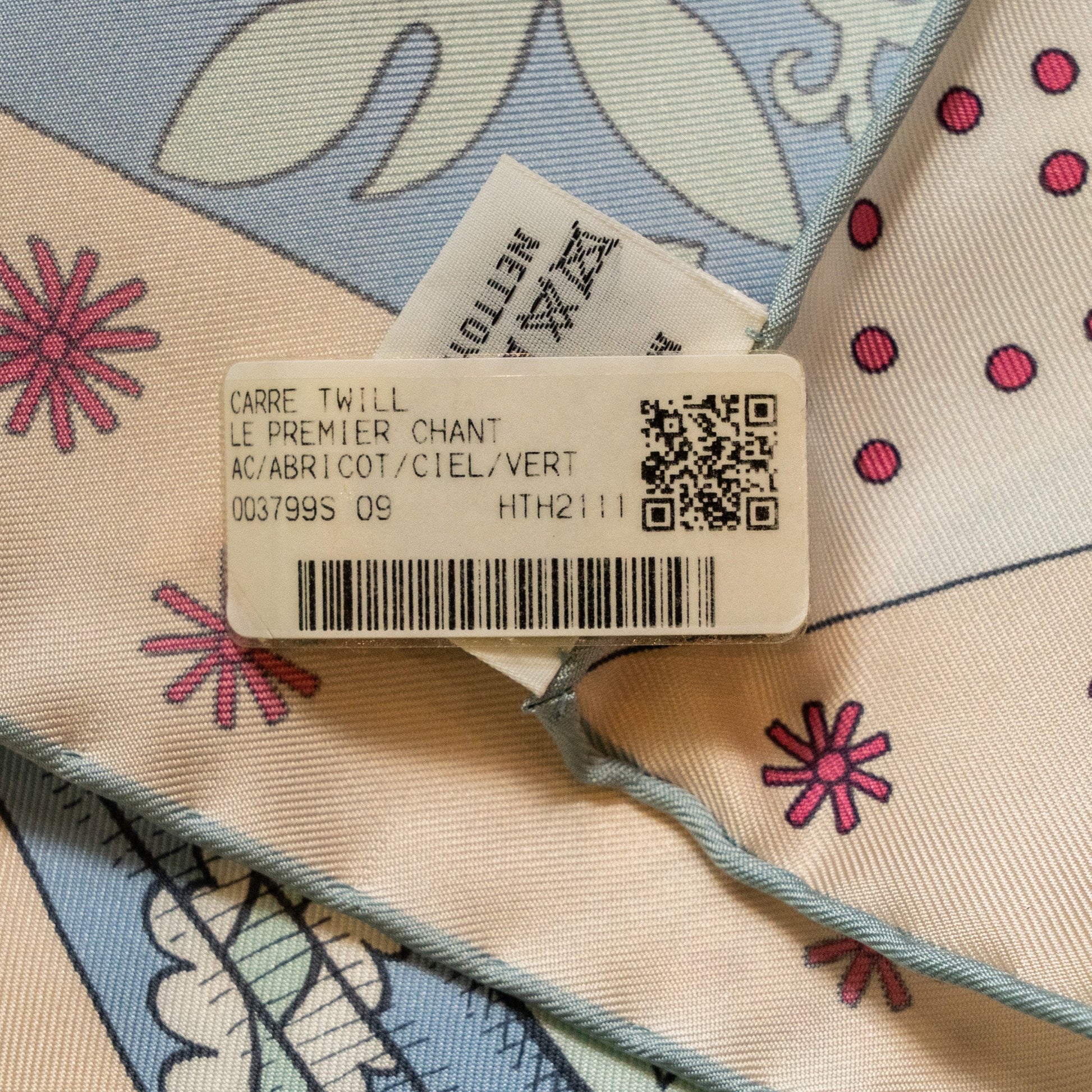 Hermes 90*90cm Silk Scarf Le Premier Chant Abricot/Ciel/Vert