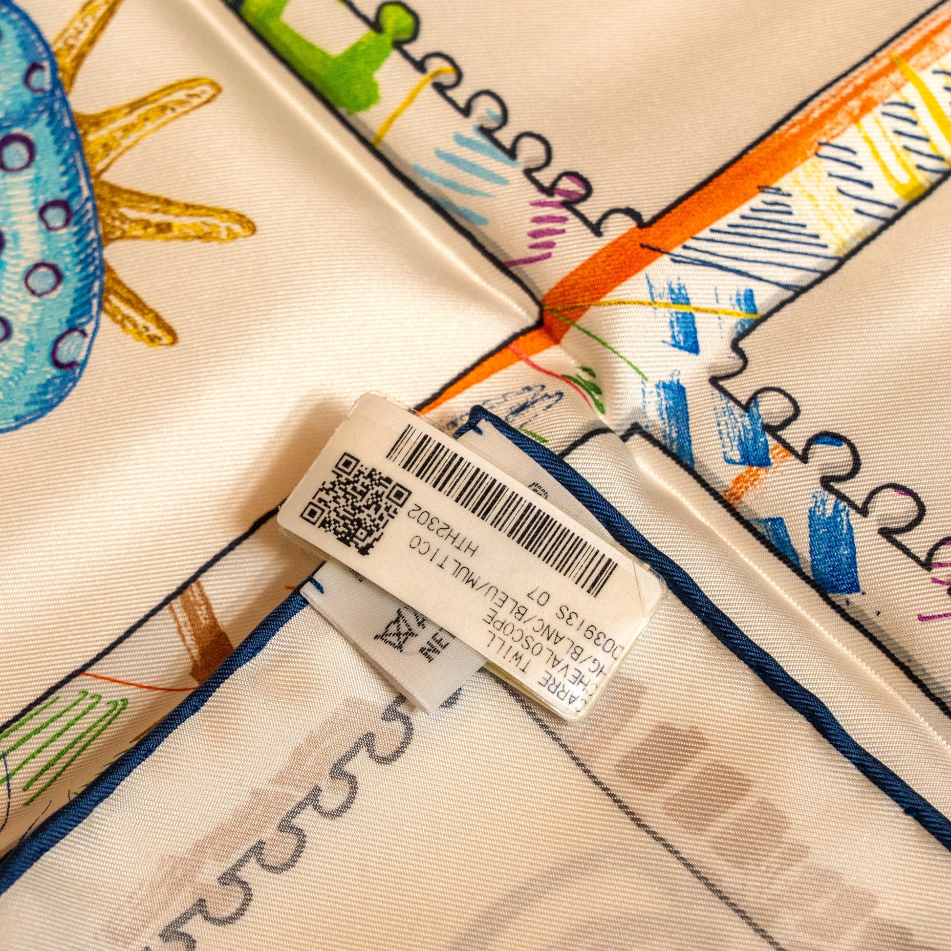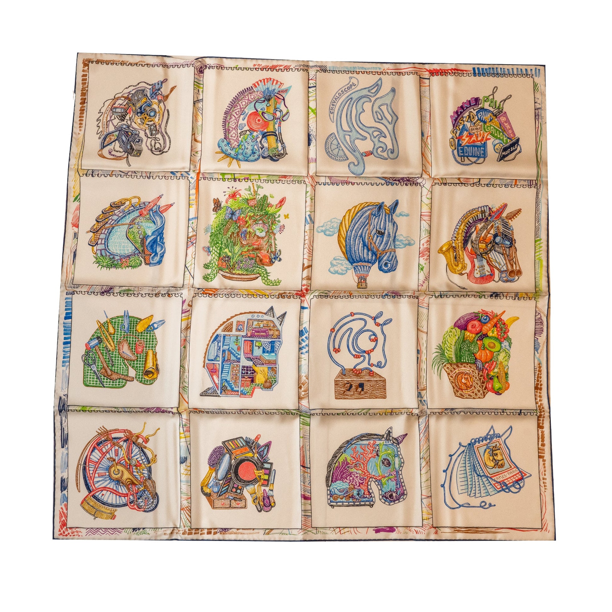Hermes 90cm Silk Scarf Chevaloscope Blanc/Bleu/Multicolour