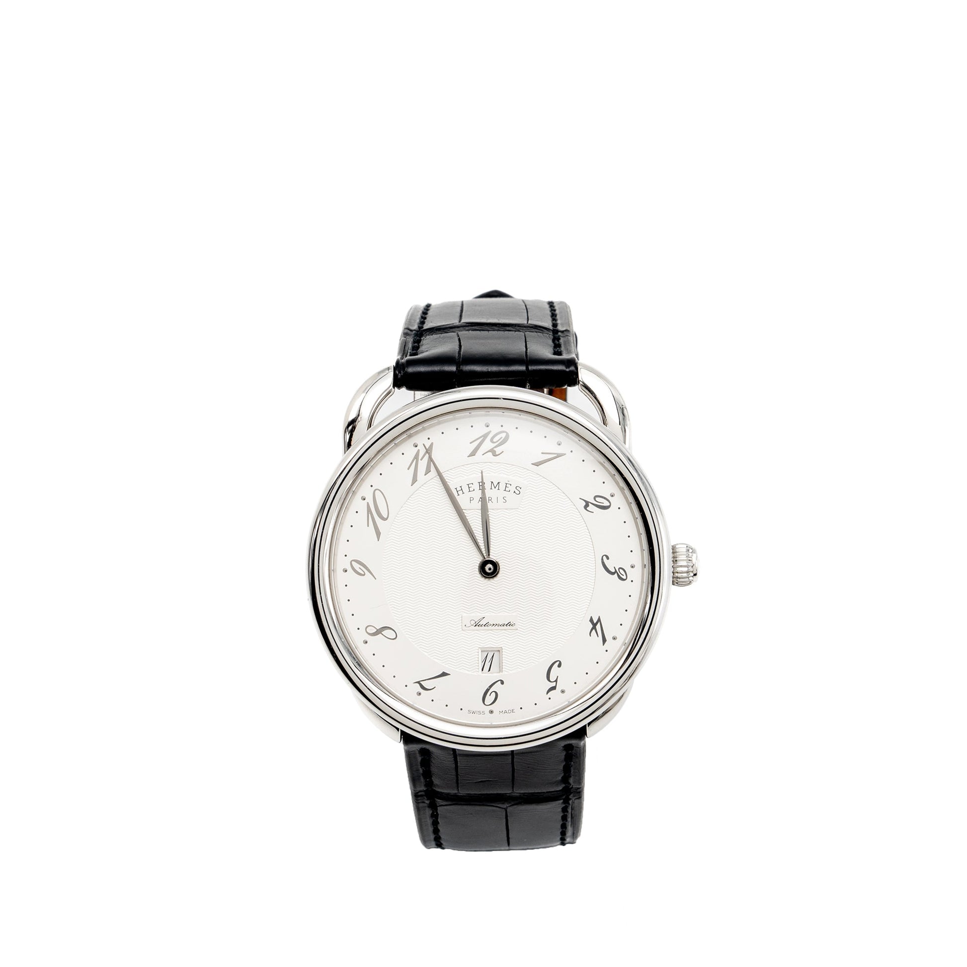 Hermes Arceau Watch 40mm large meodel with alligator black strap, white dial