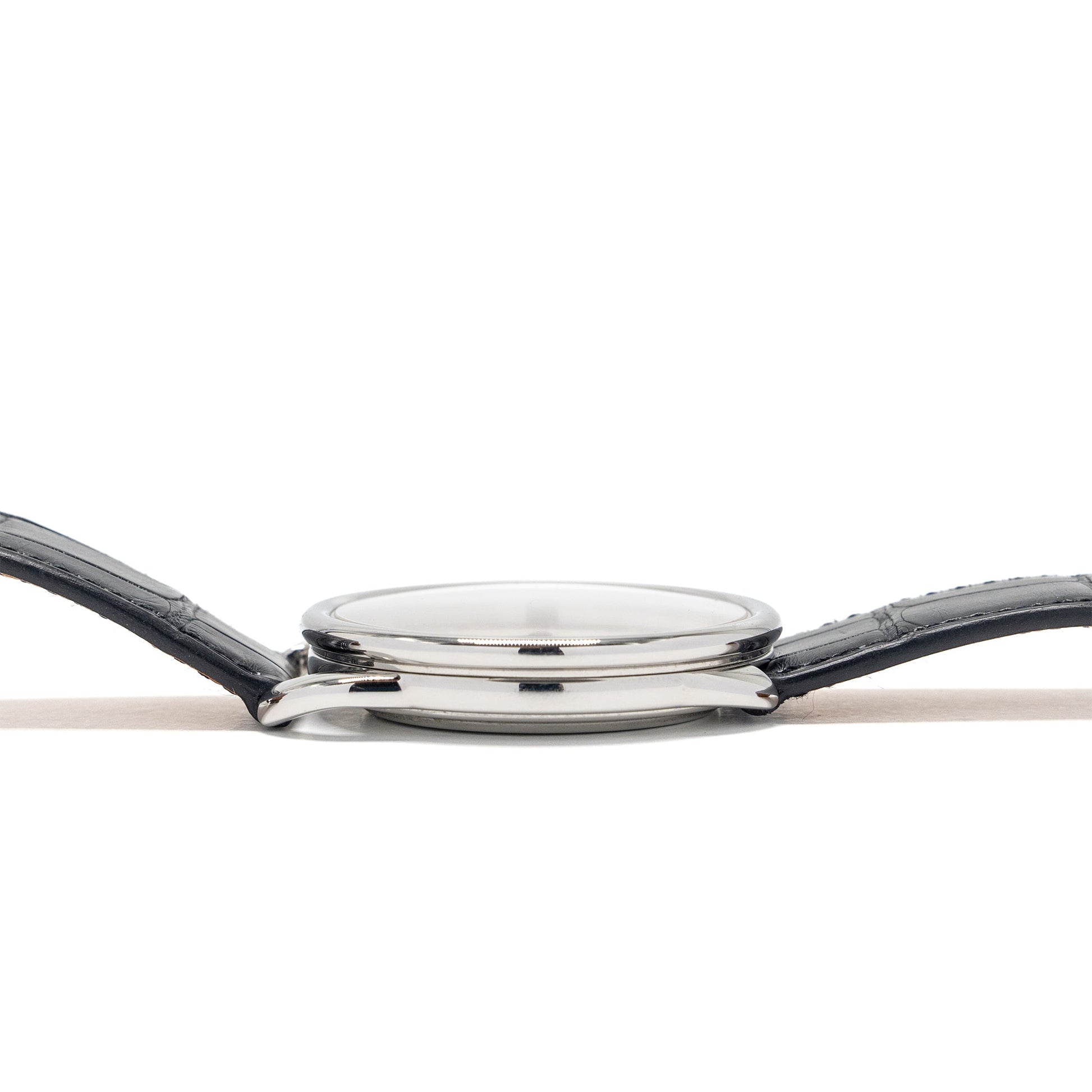 Details: Condition: 9.8/10 Gently New ( This item is in New with s light scratches on hardware.) Case: 40 x 40 mm Stainless Steel Case Wrist Size: 16-18.5 cm (We do not offer exchange or refund if the size does not fit. Please contact our sales representative before the purchase for assistant) Glass : Anti-Glare Sapphire Crystal Dial: White Strap Material: Alligator Leather Water-resistant to : 3 Bar Movement : Quartz Origin: Swiss Made Inclusion : Box, Certificate Booklet, Cites for Alligator Strap, Info Booklet