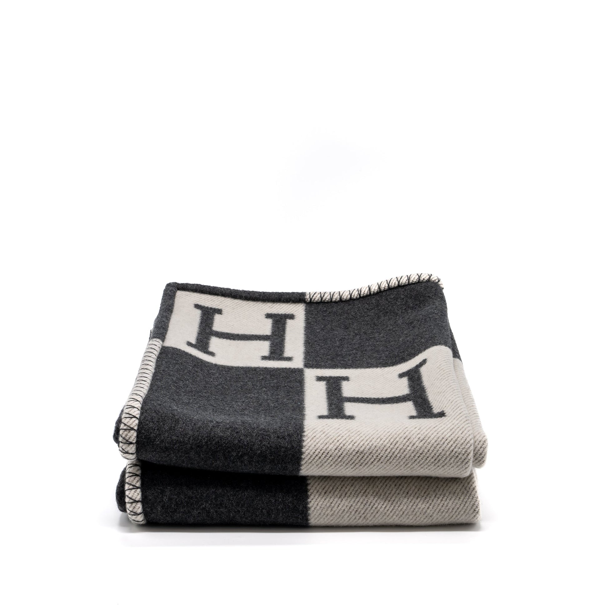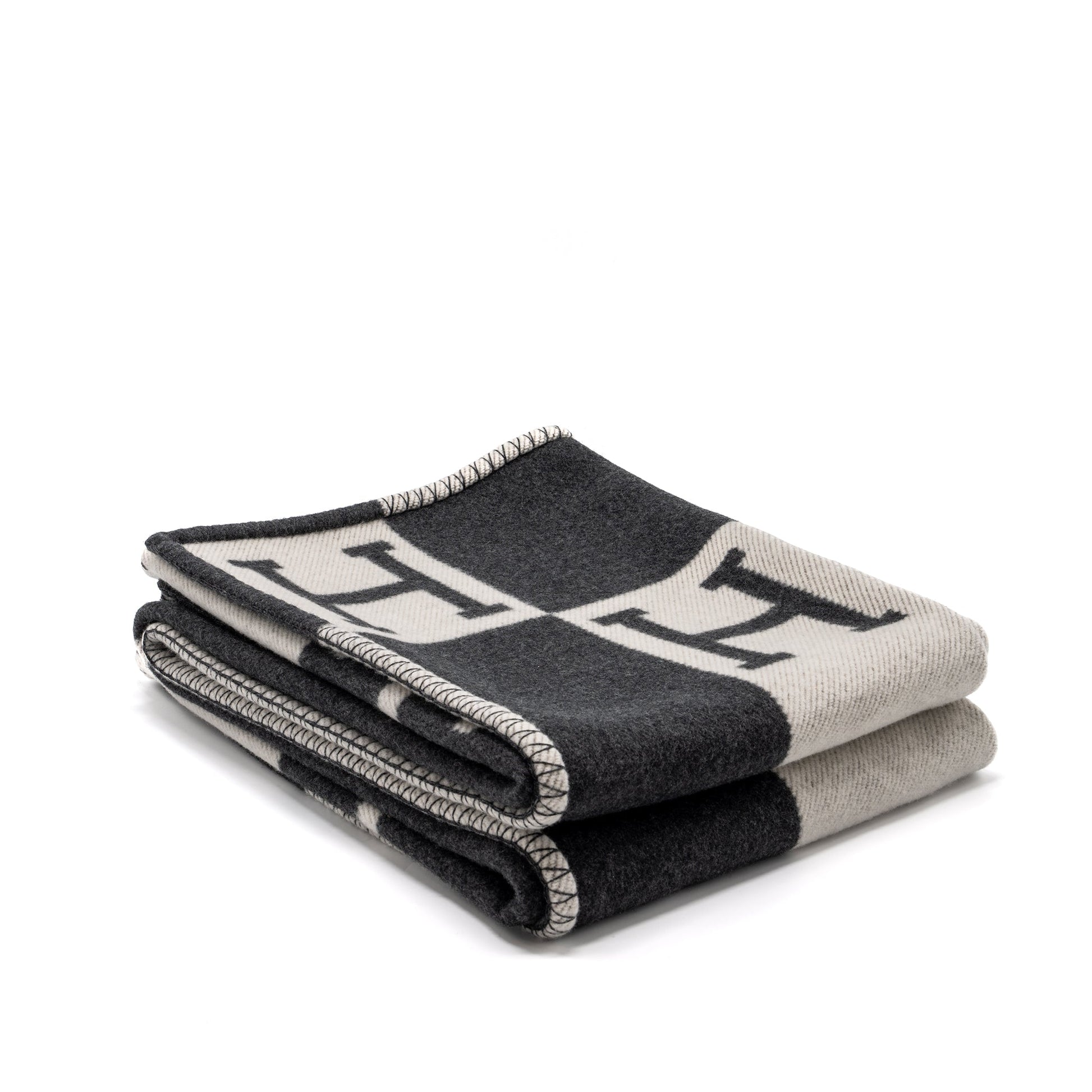 Hermes Avalon Thrown Blanket Wool/ Cashmere Ecru/ Gris Fonce