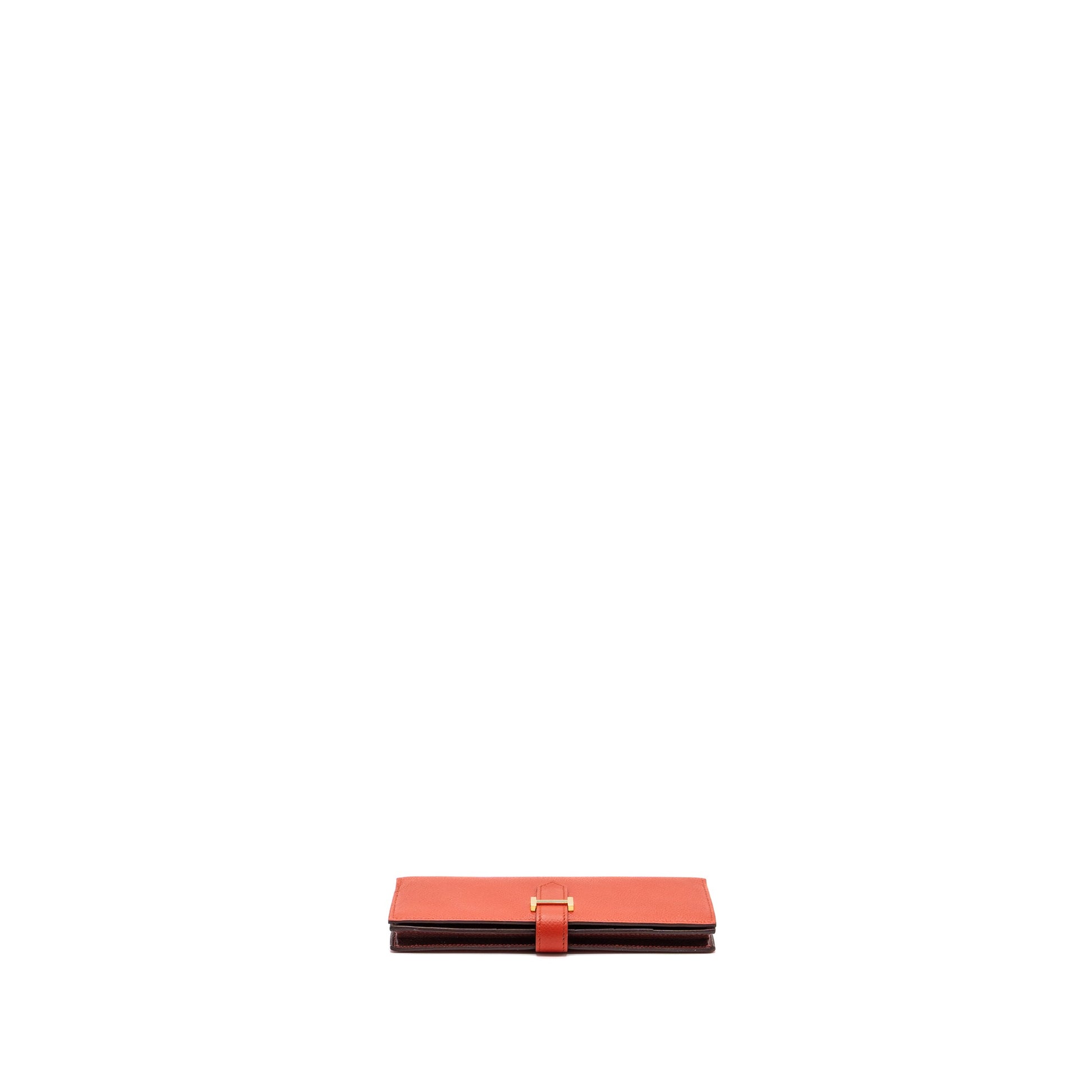 Hermes Bearn Long Wallet Epsom Capucine/ Rouge H GHW Stamp C
