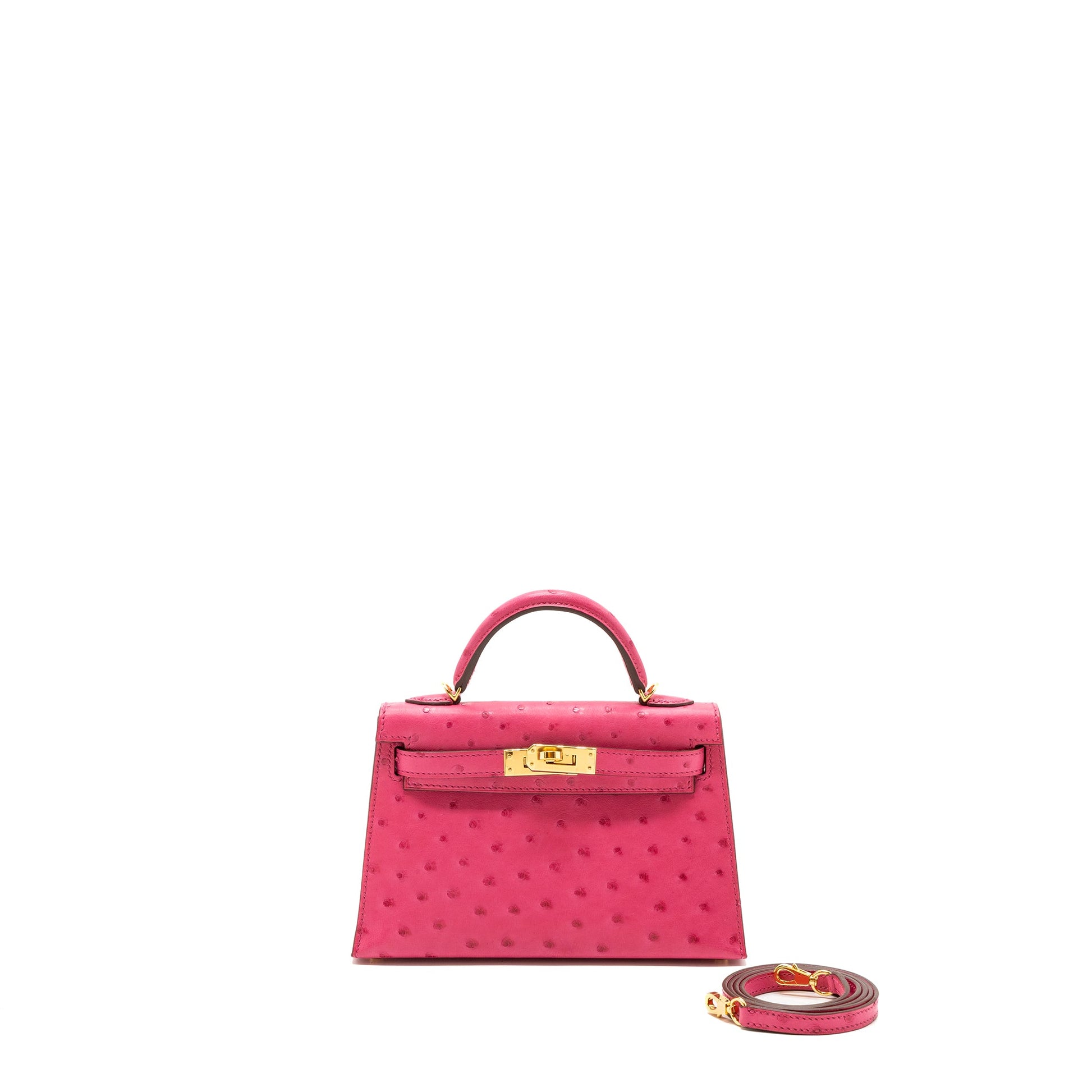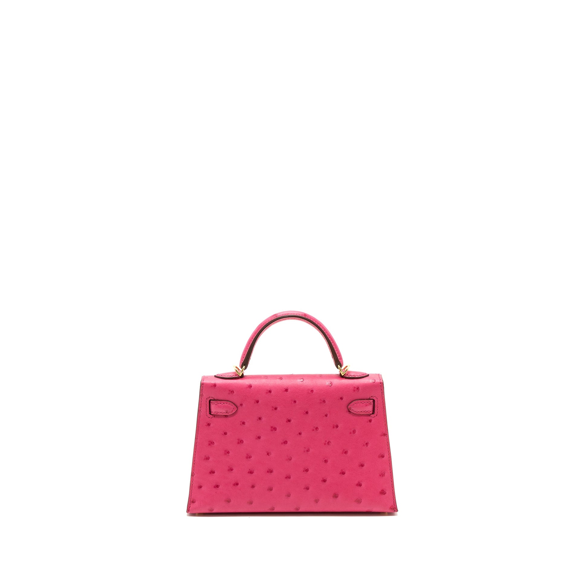 Hermes Mini Kelly II Special Order Ostrich E5 Rose Tyrien/Trench GHW Stamp Z
