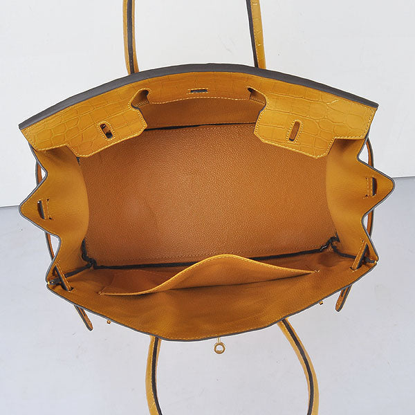 Hermes Birkin 35cm 6089 New Golden Crocodile Vein Handbags Gold