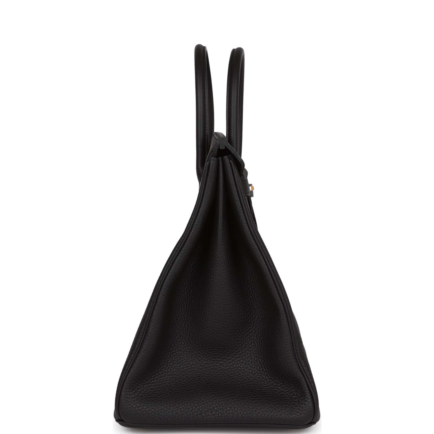 Details: This Birkin is in Black togo leather with gold hardware and has tonal stitching, two straps with front toggle closure, clochette with lock and two keys and double rolled handles. The interior is lined in black chevre with one zip pocket with an Hermes engraved zipper pull and an open pocket on the opposite side. Collection: U Origin: France Condition: Pristine; new or never New (plastic on hardware) Accompanied by: Hermes dustbag, clochette, lock, two keys, clochette dustbag, care booklet, ribbon and felt Measurements: 15.75" width x 12.75" height x 8" depth; 4.25" handle drop