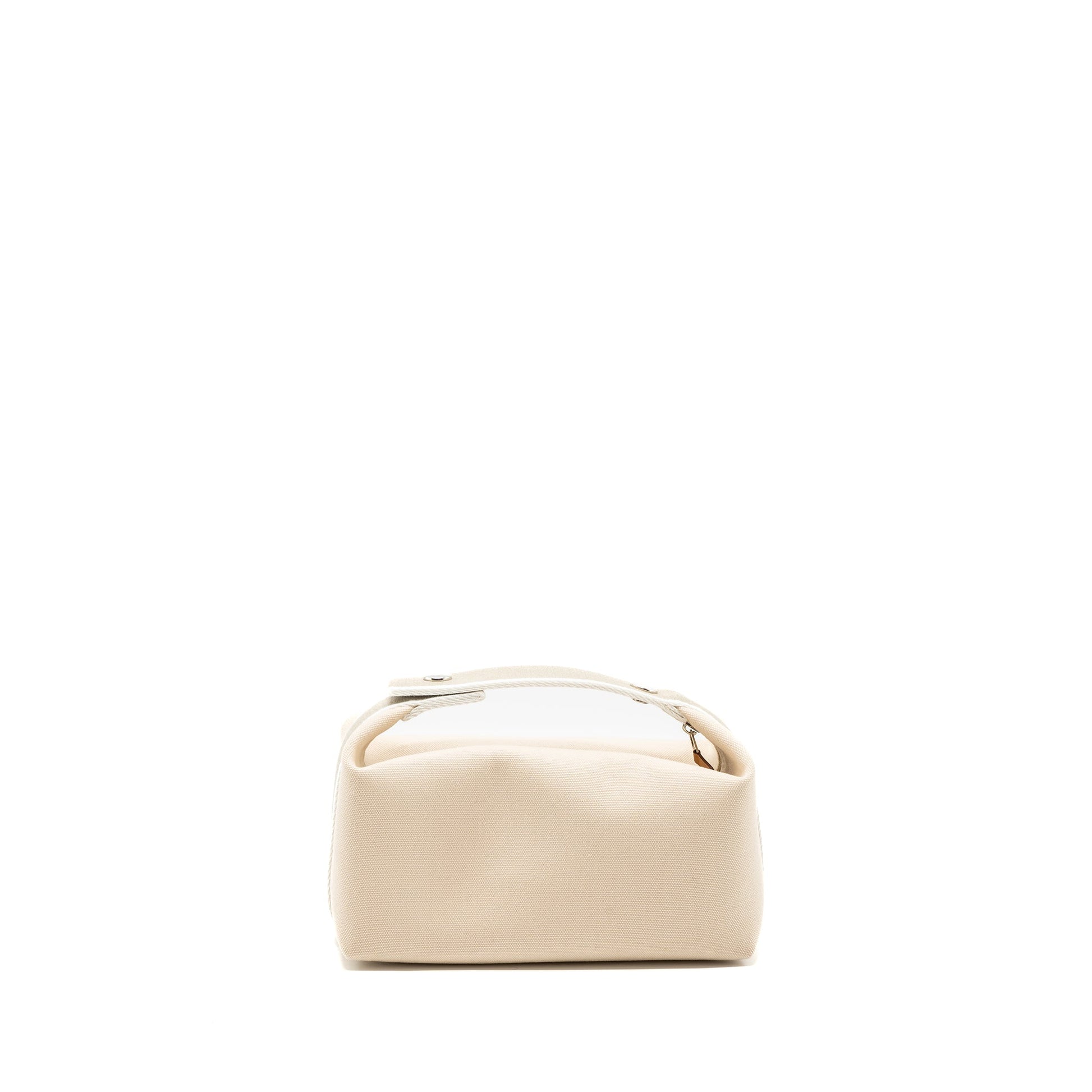 Details: Condition: 10/10 Unused ( This item is in unused and New condition. ) Colour: Natural Hardware Colour: Silver Tone Measurement: Length: 21 cm Height: 10 cm Depth: 12 cm Material : Canvas Origin : France Inclusion: Copy of Receipt