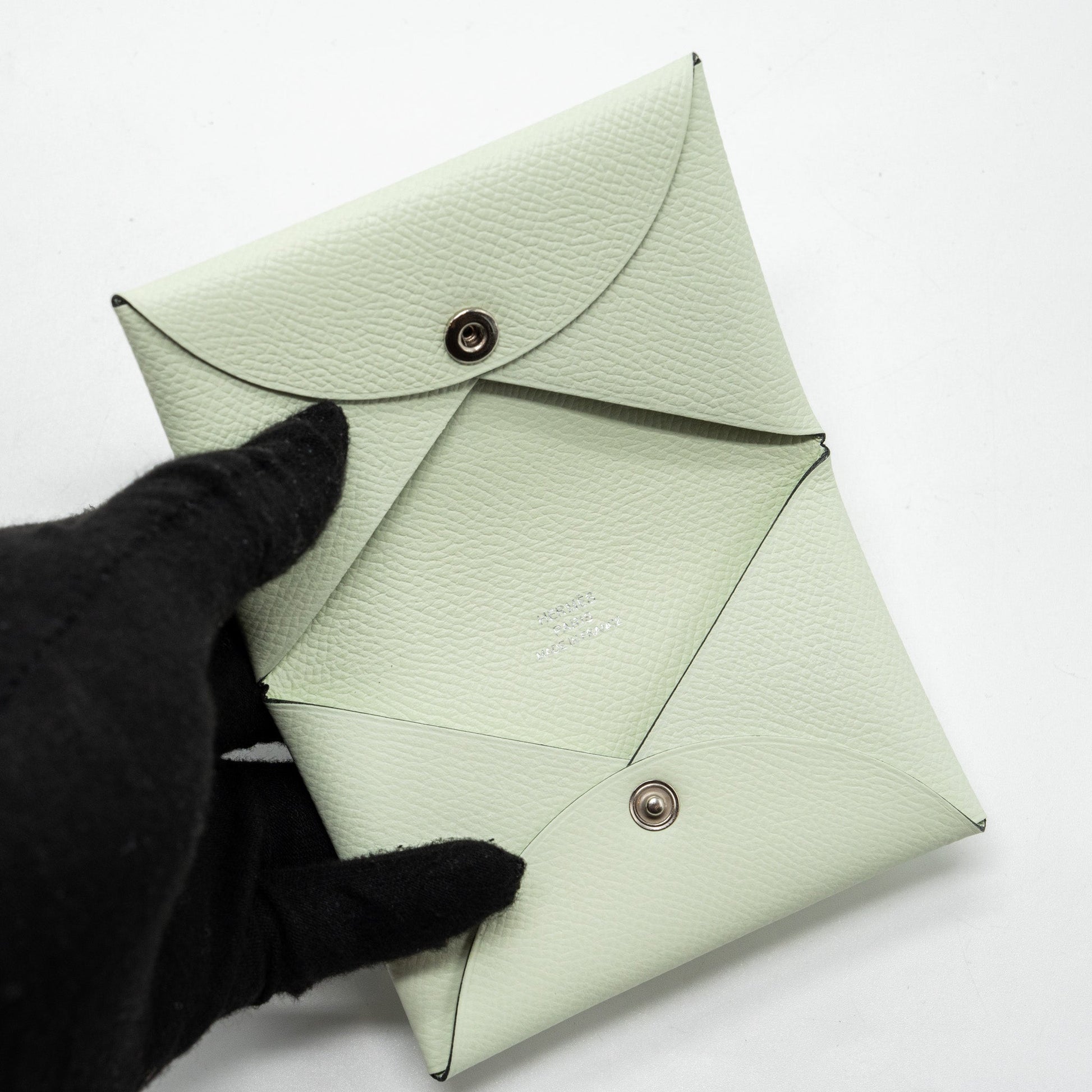 Hermes Calvi Card Holder Epsom Vert Fizz SHW Stamp U