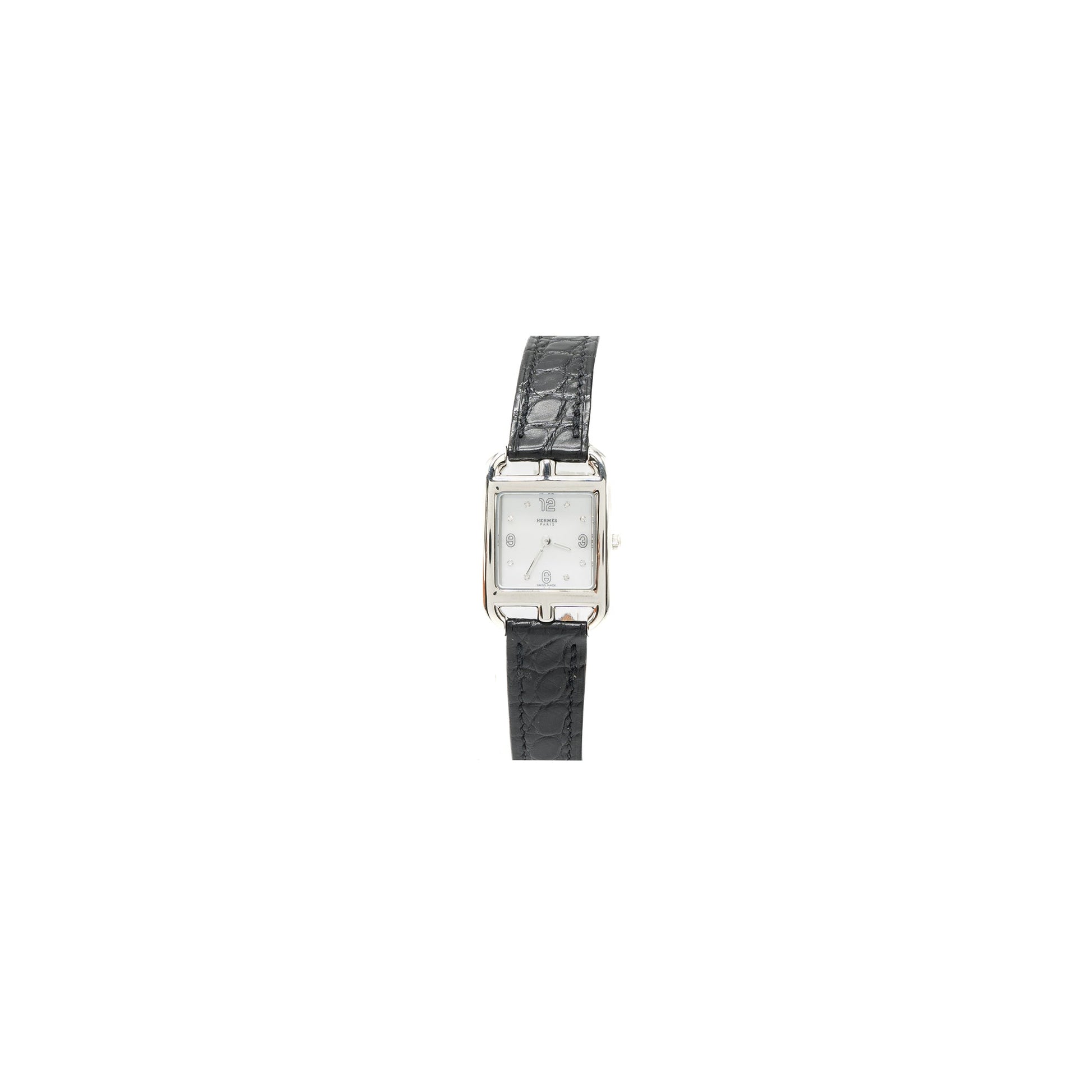 Hermes Cape Cod Watch Small Model 31mm Steel Case with Black alligator Strap