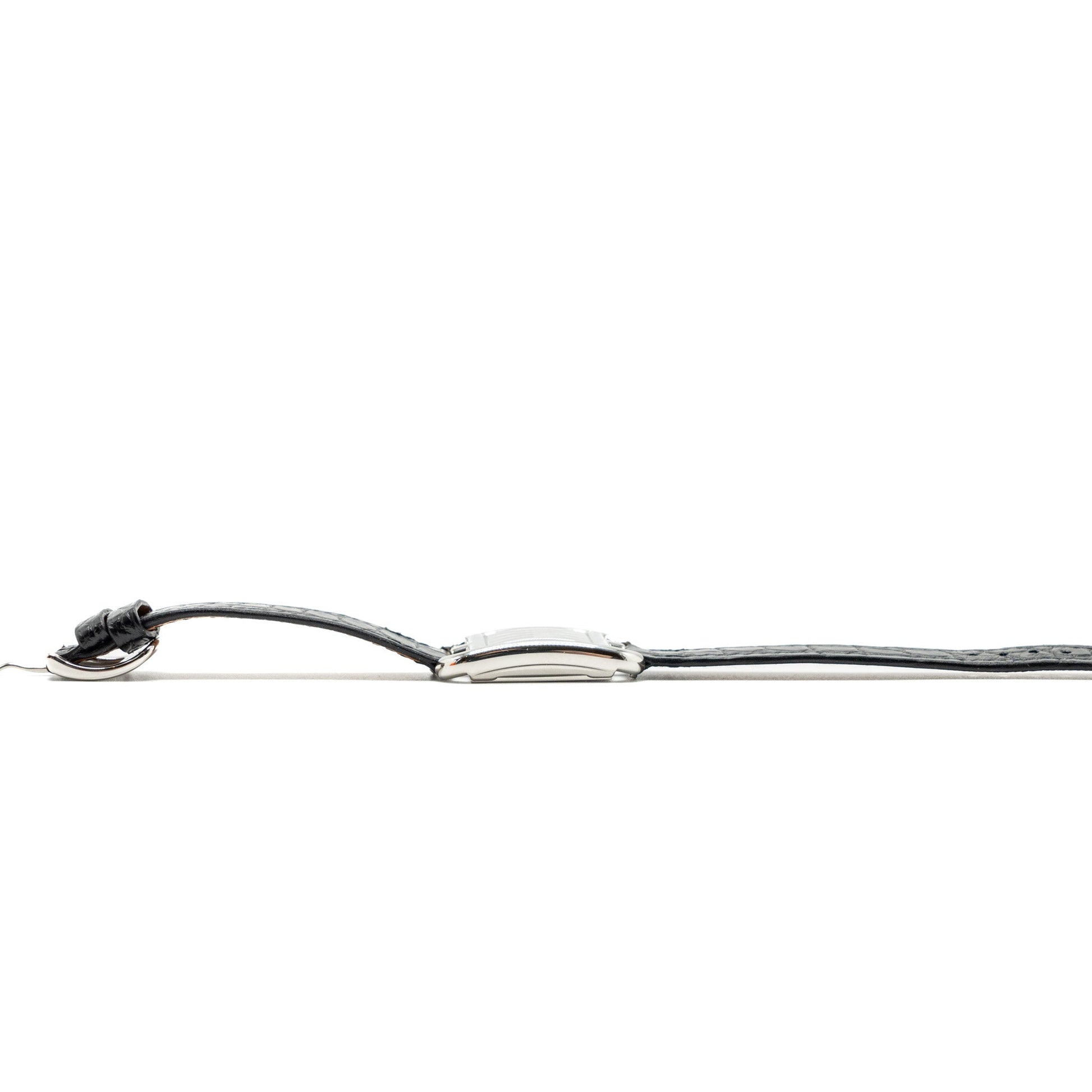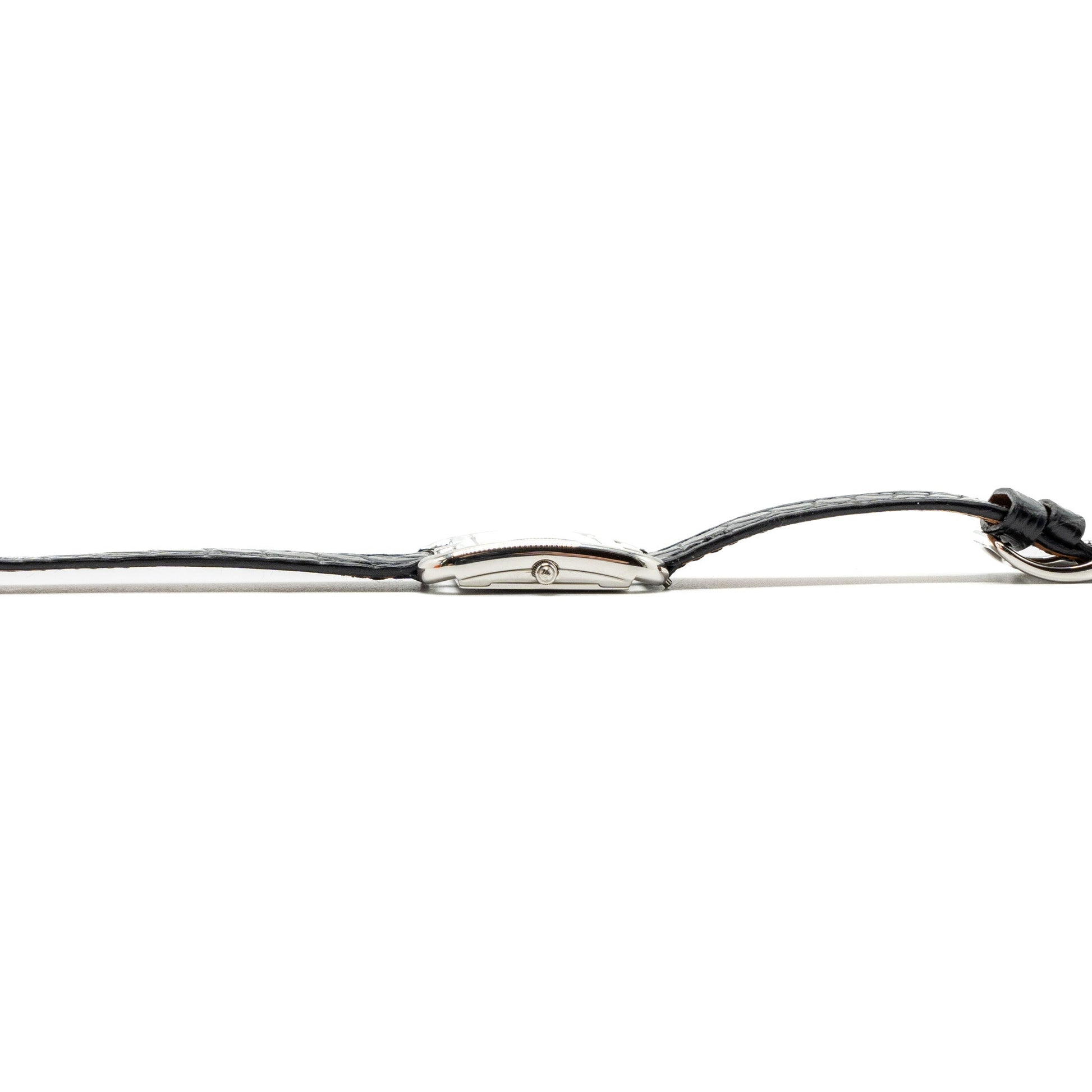 Details: Condition : 9.9/10 New ( This item is in excellent conditionwith m inor scratches on hardware.) Case: 31 x 31 mm Steel Case Wrist Size: 14-16.5 cm (We do not offer exchange or refund if the size does not fit. Please contact our sales representative before the purchase for assistant) Glass : Anti-Glare Sapphire Crystal Dial: White Strap Material: Black Alligator Leather Water-resistant to : 3 Bar Movement : Quartz Origin: Swiss Made Inclusion : Box, Certificate, Cites for Strap Year of Purchase: 2023