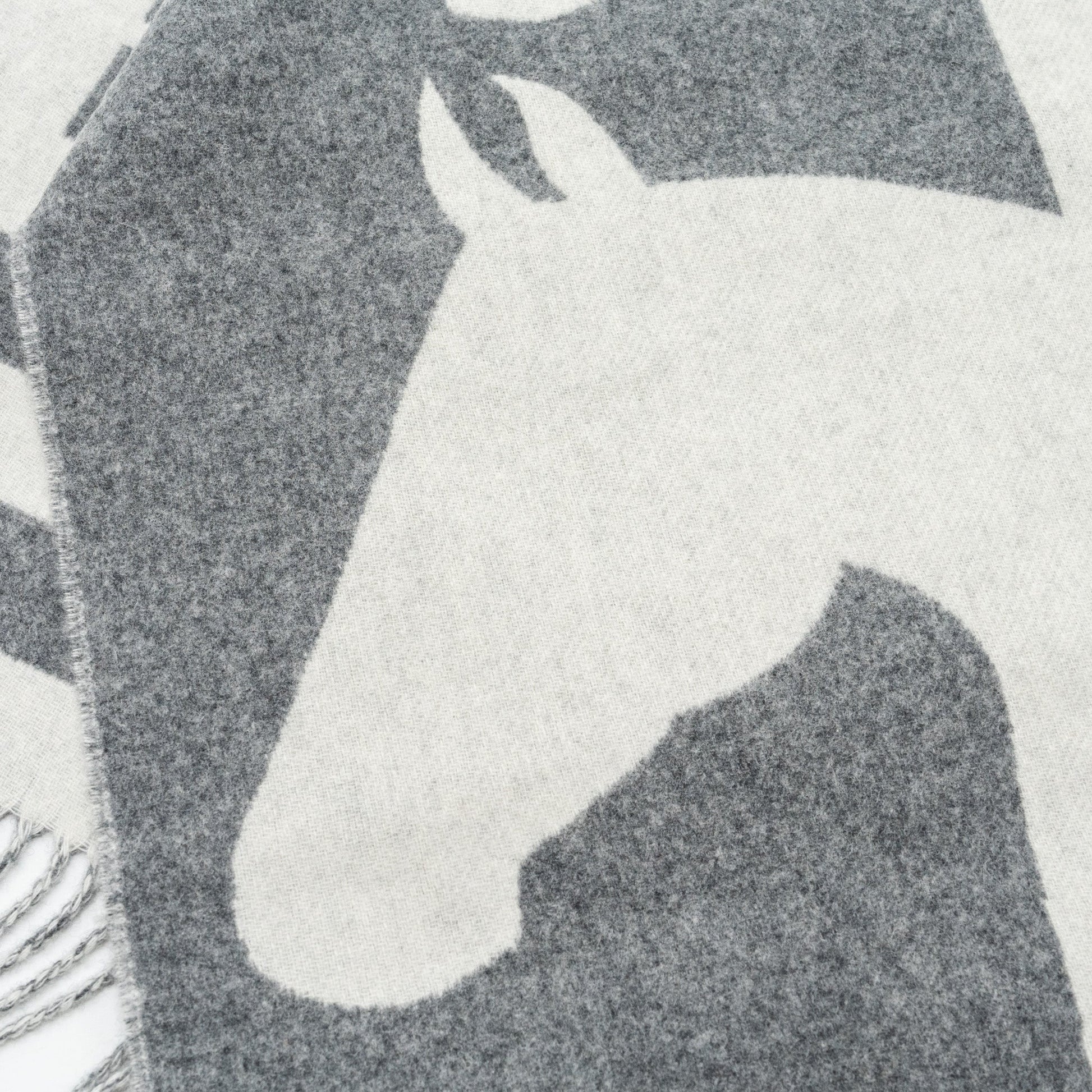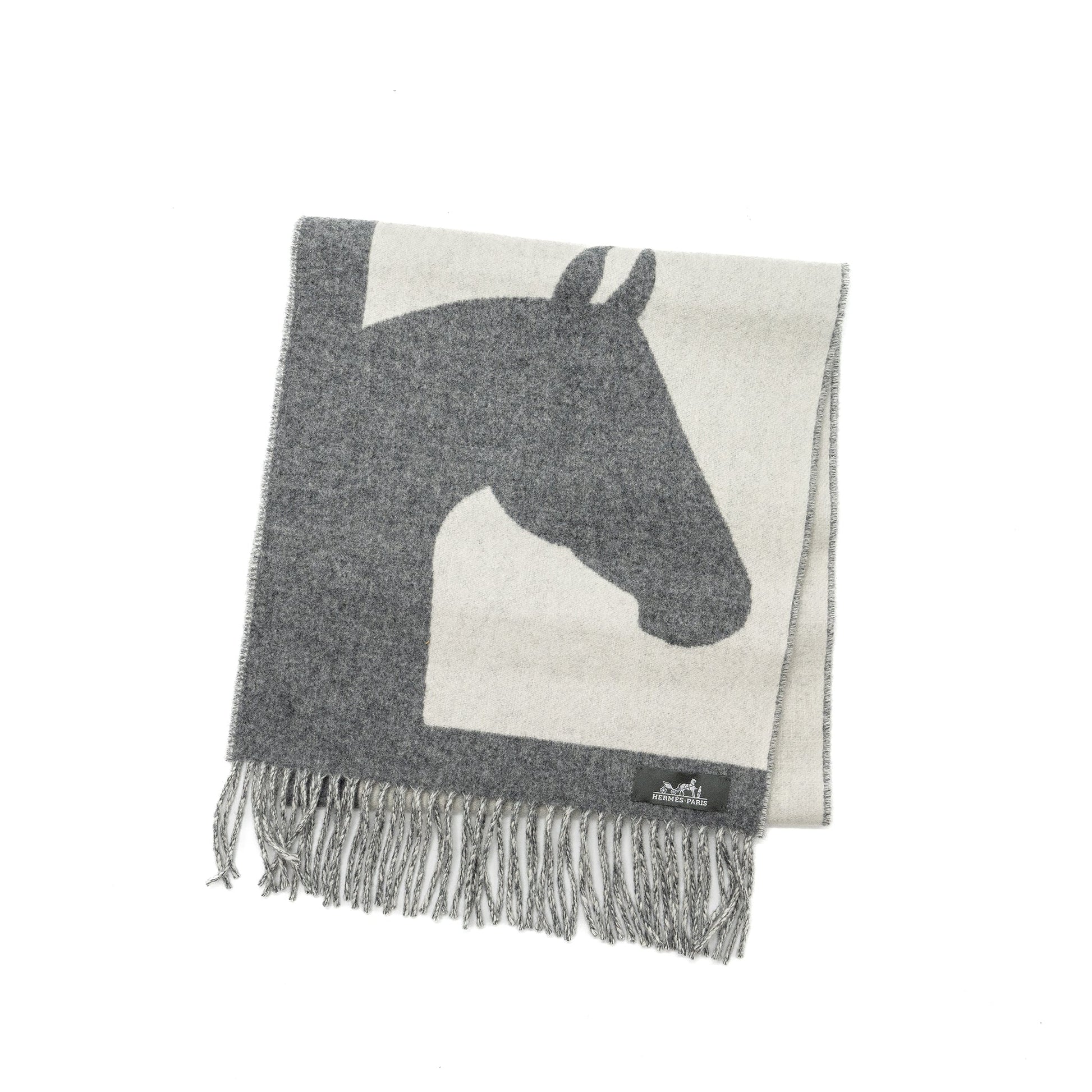 Hermes Casaque Love Story Muffler Cashmere Gris Clair/ Ivoire