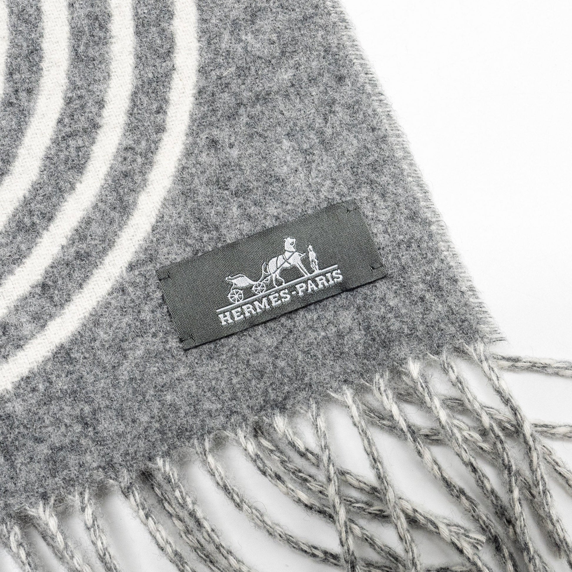 Hermes Casaque Vague Muffler Scarf Cashmere Gris Flanelle/Ivoire