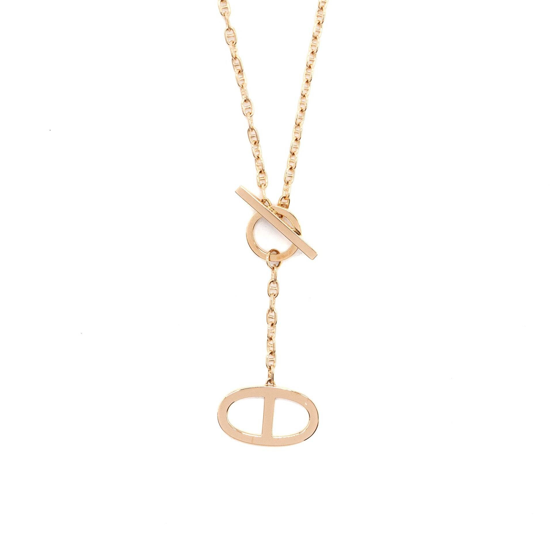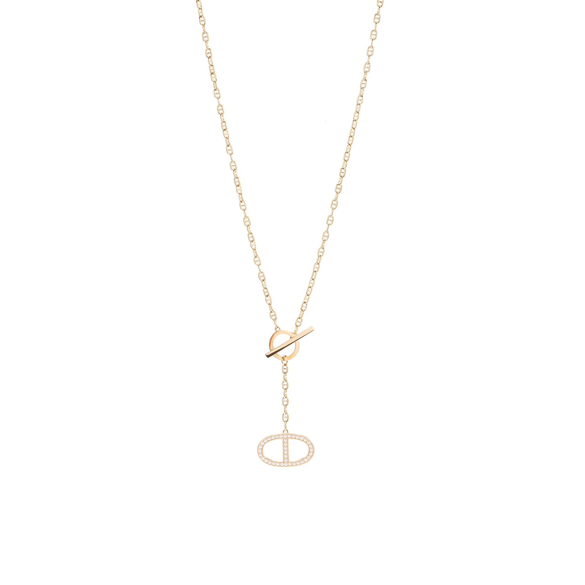 Hermes Chain D’ancre Contour Pendant, Large Model Rose Gold, Diamonds