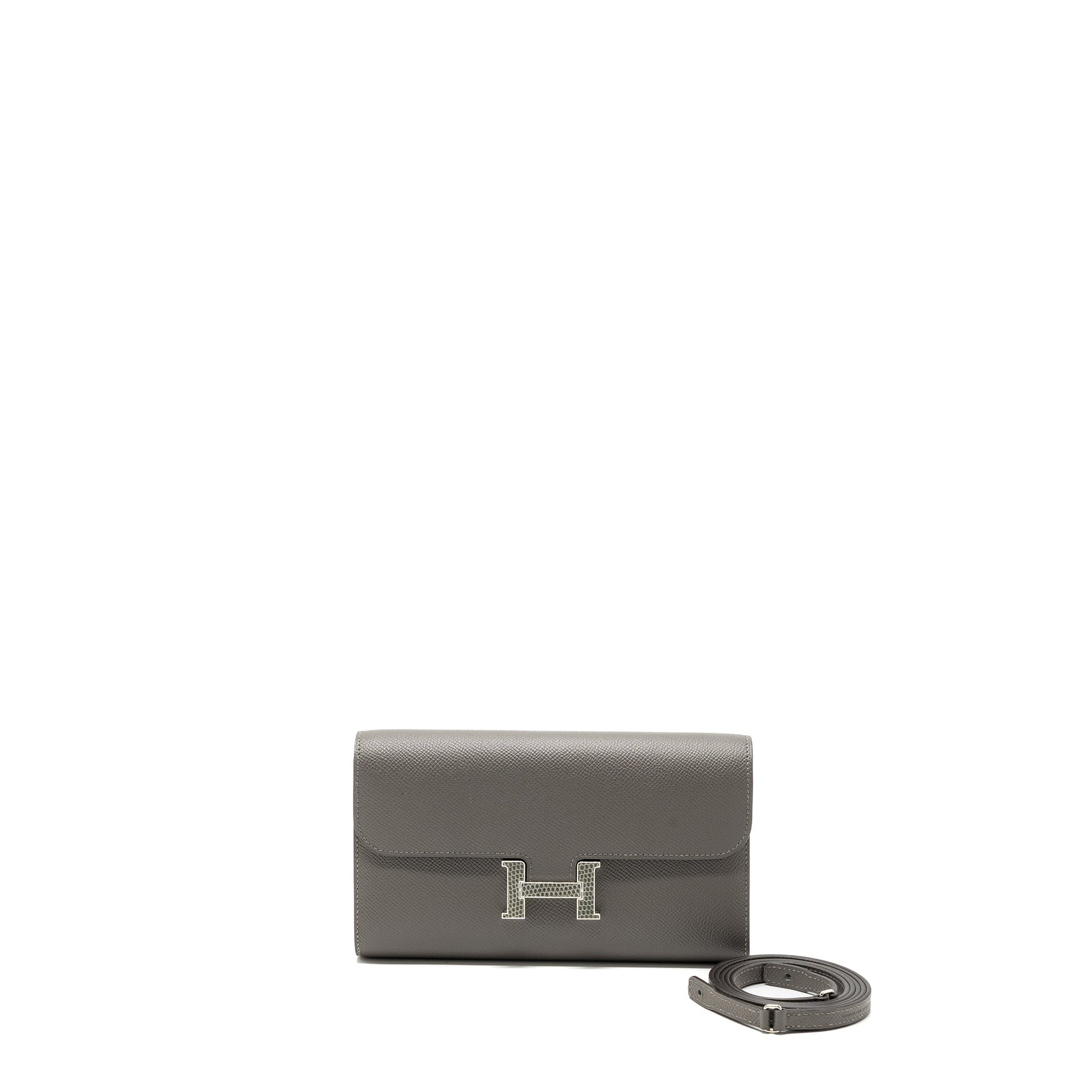 Hermes Constance To Go Epsom Lizard Buckle Gris Meyer/Gris Fonce SHW Stamp U