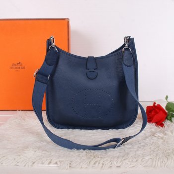 Details: Hermes Evelyne III Crossbody Bag PM Dark Blue Material: Real Leather Size: W29 x H30 x D10 cm Features: Adjustable strap, outside pocket, silver hardware