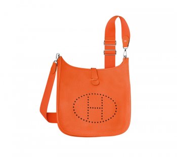 Details: Hermes Evelyne III Crossbody Bag PM Orange Material: Real Leather Size: W29 x H30 x D10 cm Features: Adjustable strap, outside pocket, silver hardware