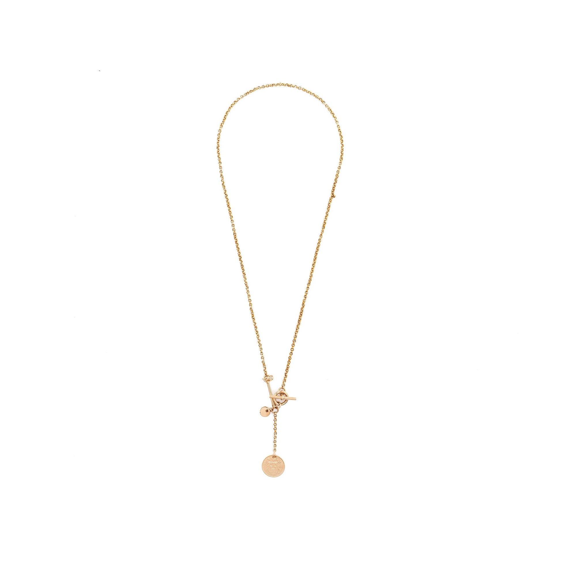 Details: Condition: 10/10 Unused ( This item is in unused and New condition. ) Material: Pendant in rose gold set with a diamond, toggle closure Diamonds: 1 diamond ( Total Carat: 0.04 ct ) Measurement: Total Length: ~44.5 cm (We do not offer exchange or refund if the size does not fit. Please contactsupportbefore the purchase for assistance ) Inclusion: Full Set with Certificate and Copy of Receipt Origin: France
