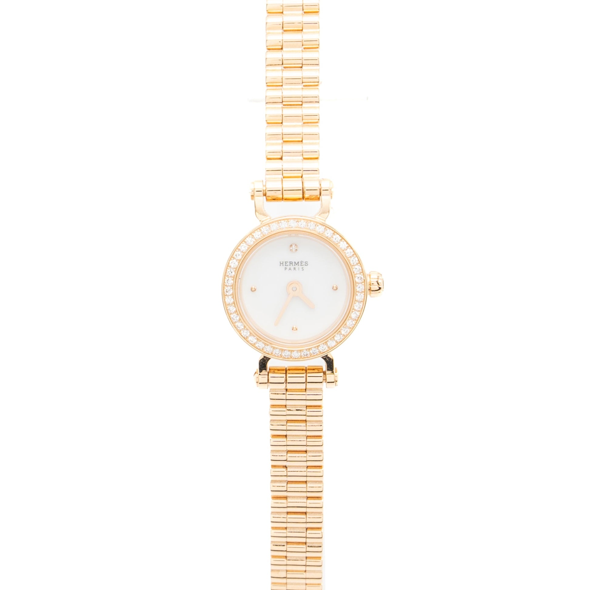 HERMES FAUBOURG QUARTZ WATCH MINI MODEL 15MM ROSE GOLD DIAMONDS